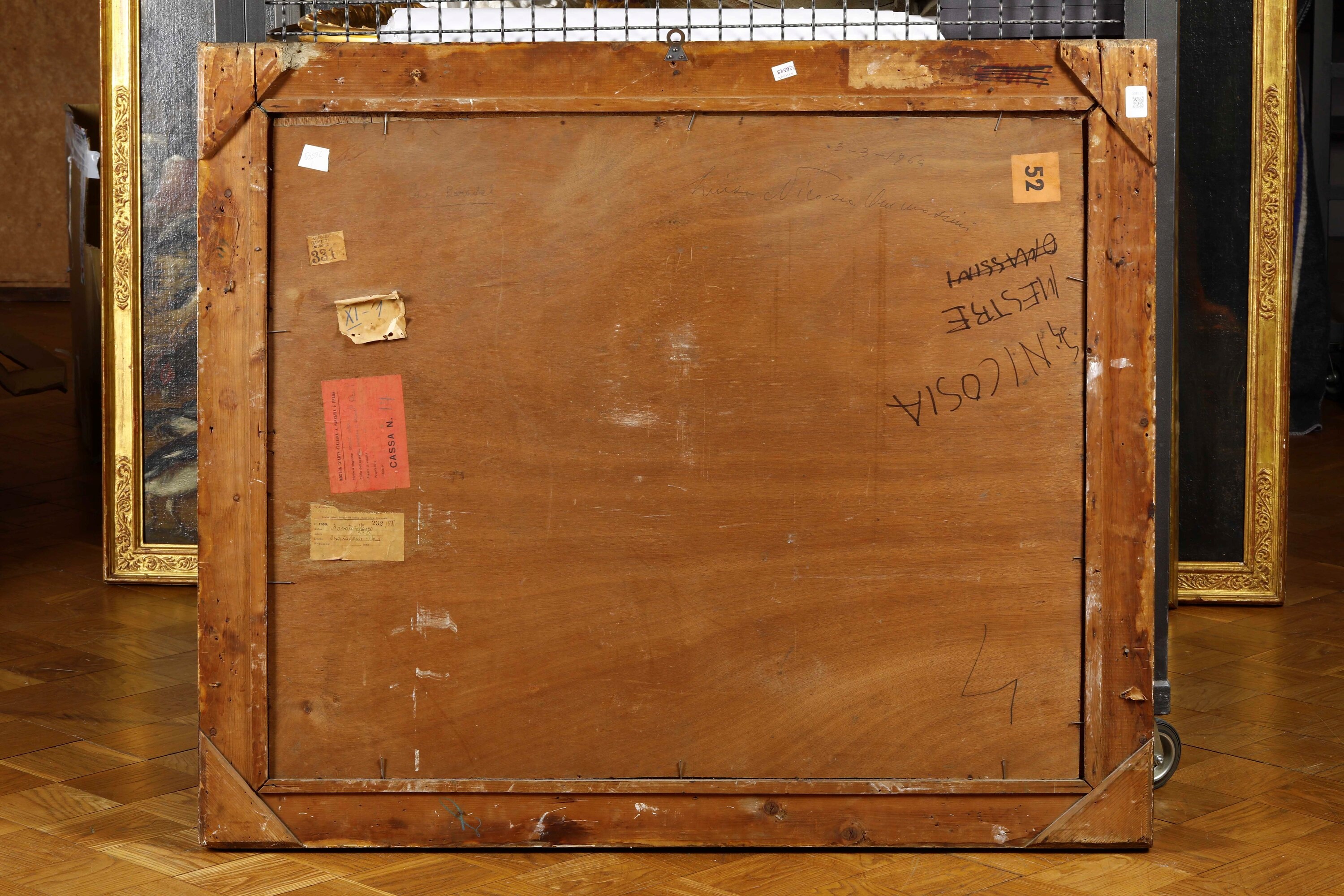 Al retro etichetta cartacea Mostra d'arte italiana a Varsavia e Praga; Etichetta Esposizione d'arte italiana Budapest n.331