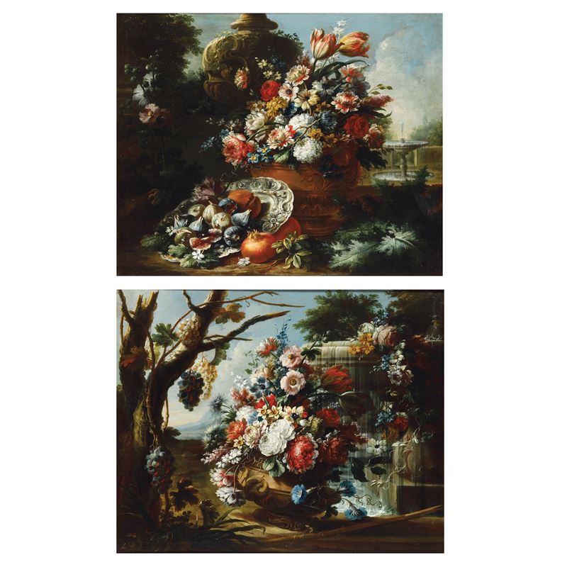 Trionfi di fiori e frutti in paesaggio