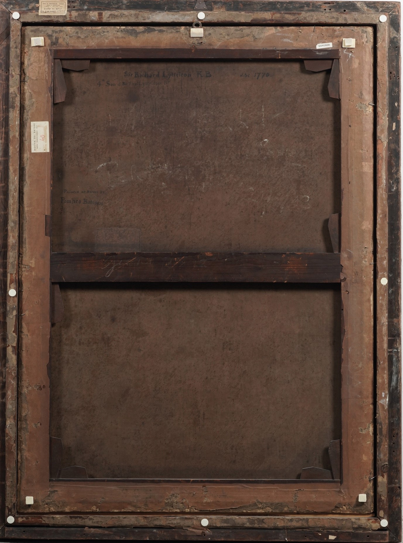 reca al retro antica iscrizione: "Sir Richard Lyttelton K.B. 4th Son of Sir Tho. Lyttelton B - died 1770. Painted in Rome by Pompeo Battoni"