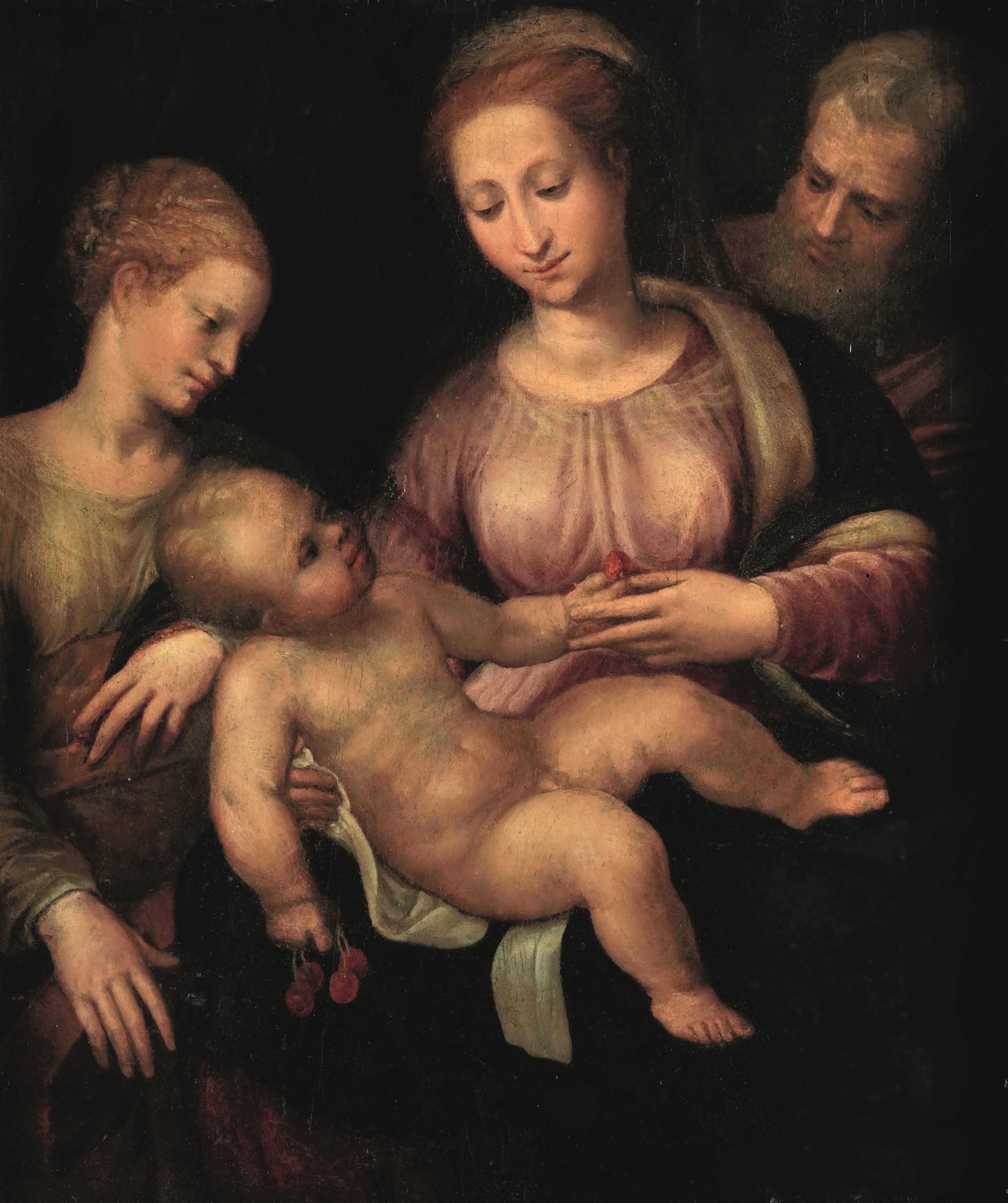 Scuola emiliana del XVI secolo Sacra Famiglia con Santa Caterina