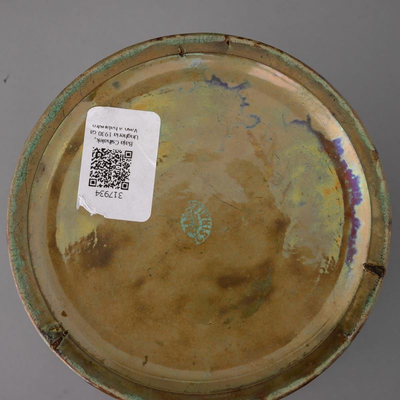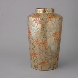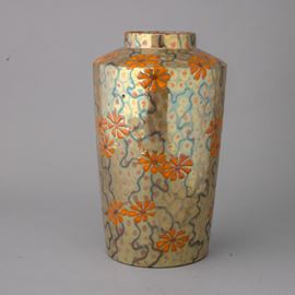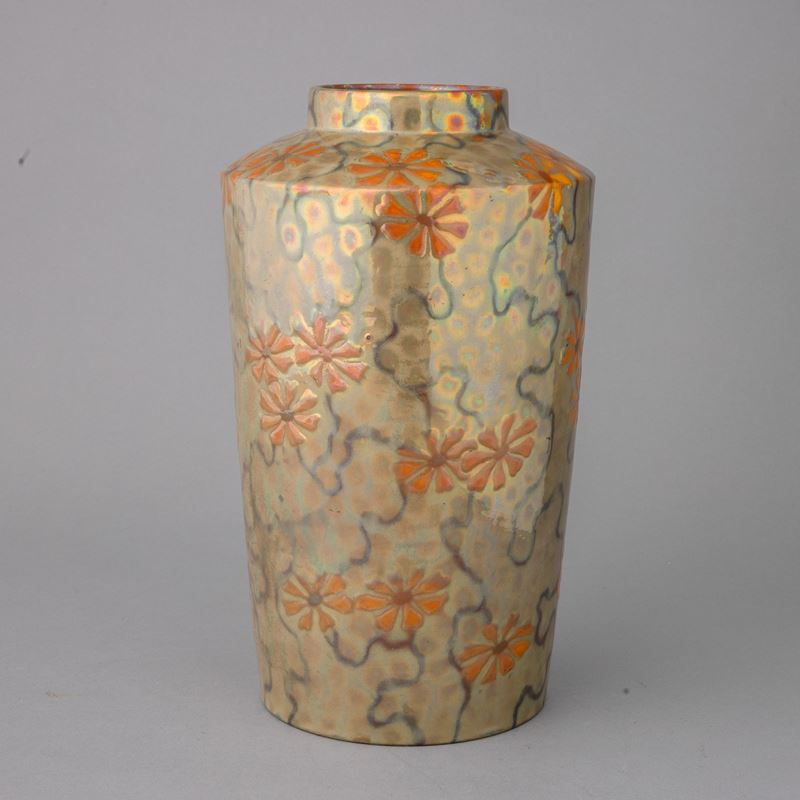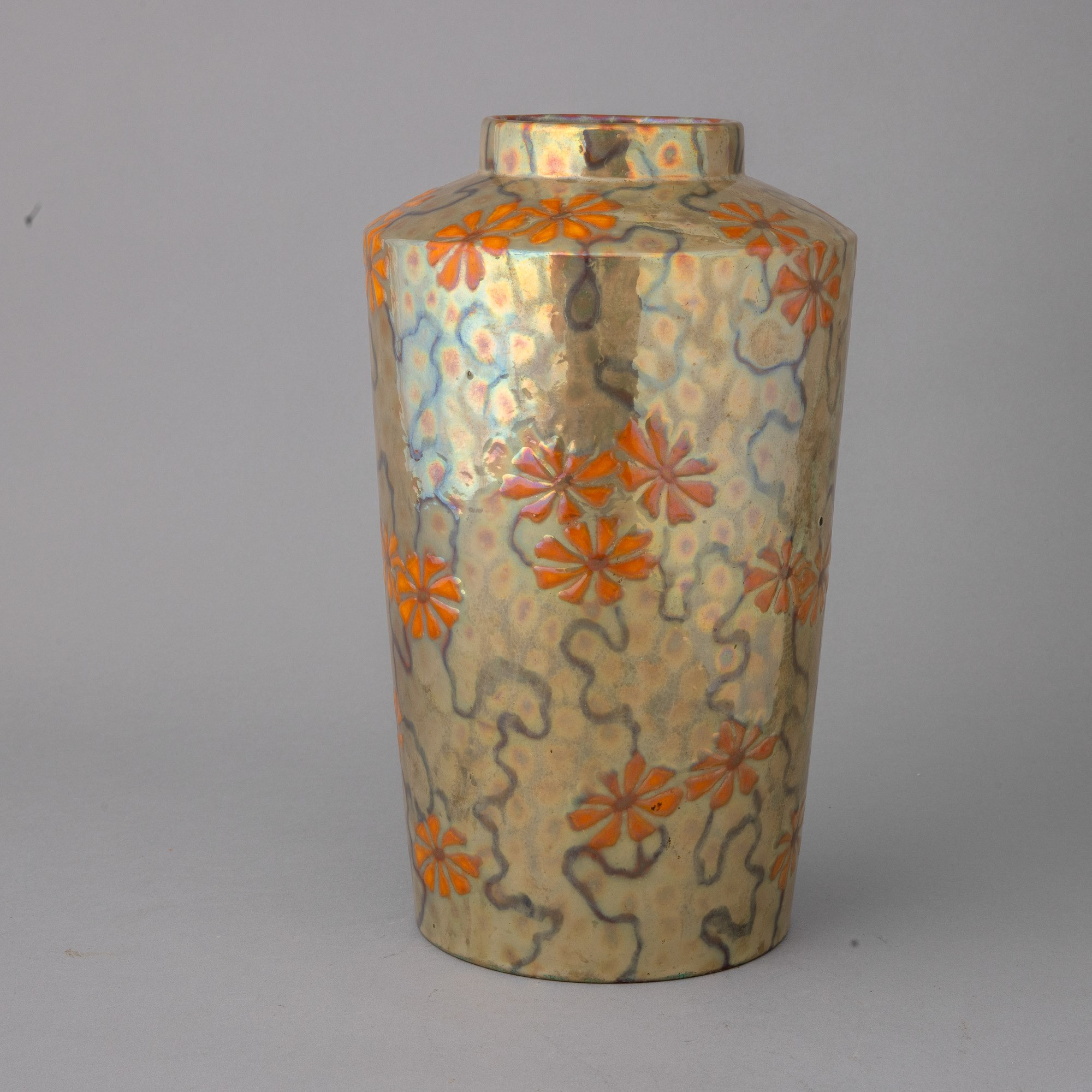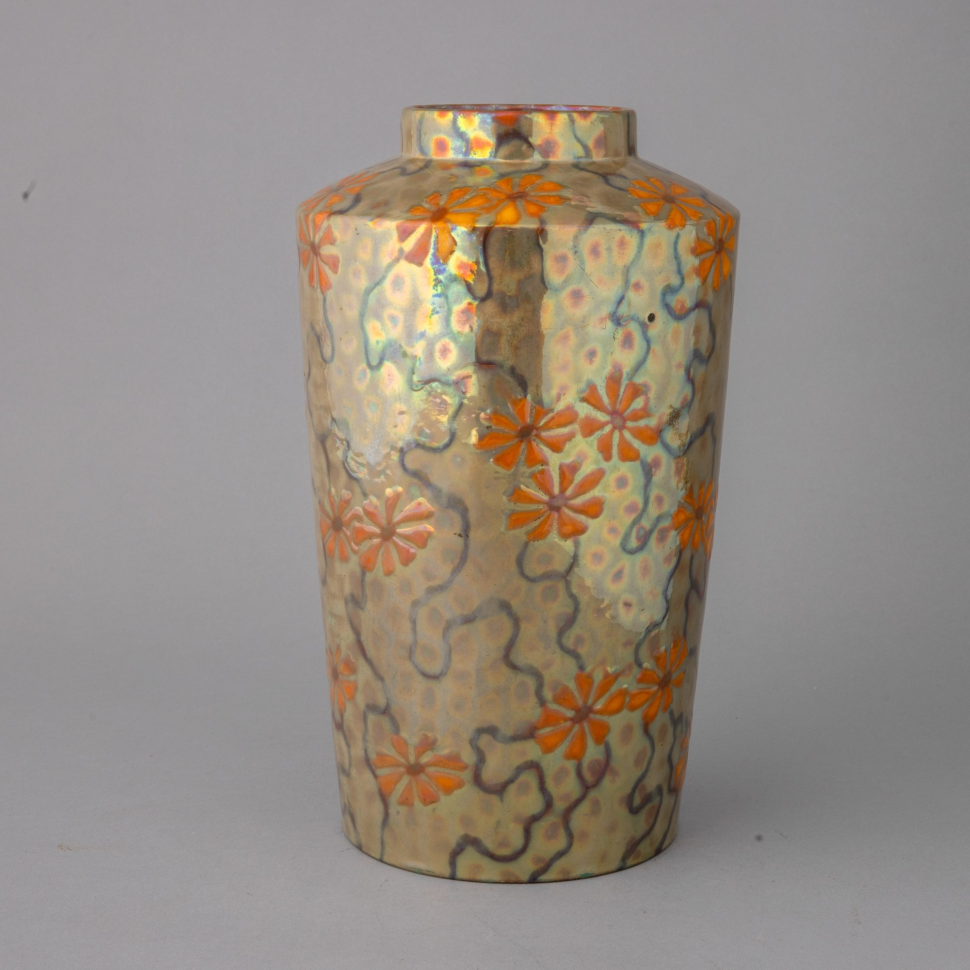 Vaso a balaustro in ceramica con decoro floreale a rilievo. Superficie interamente lustrata.
