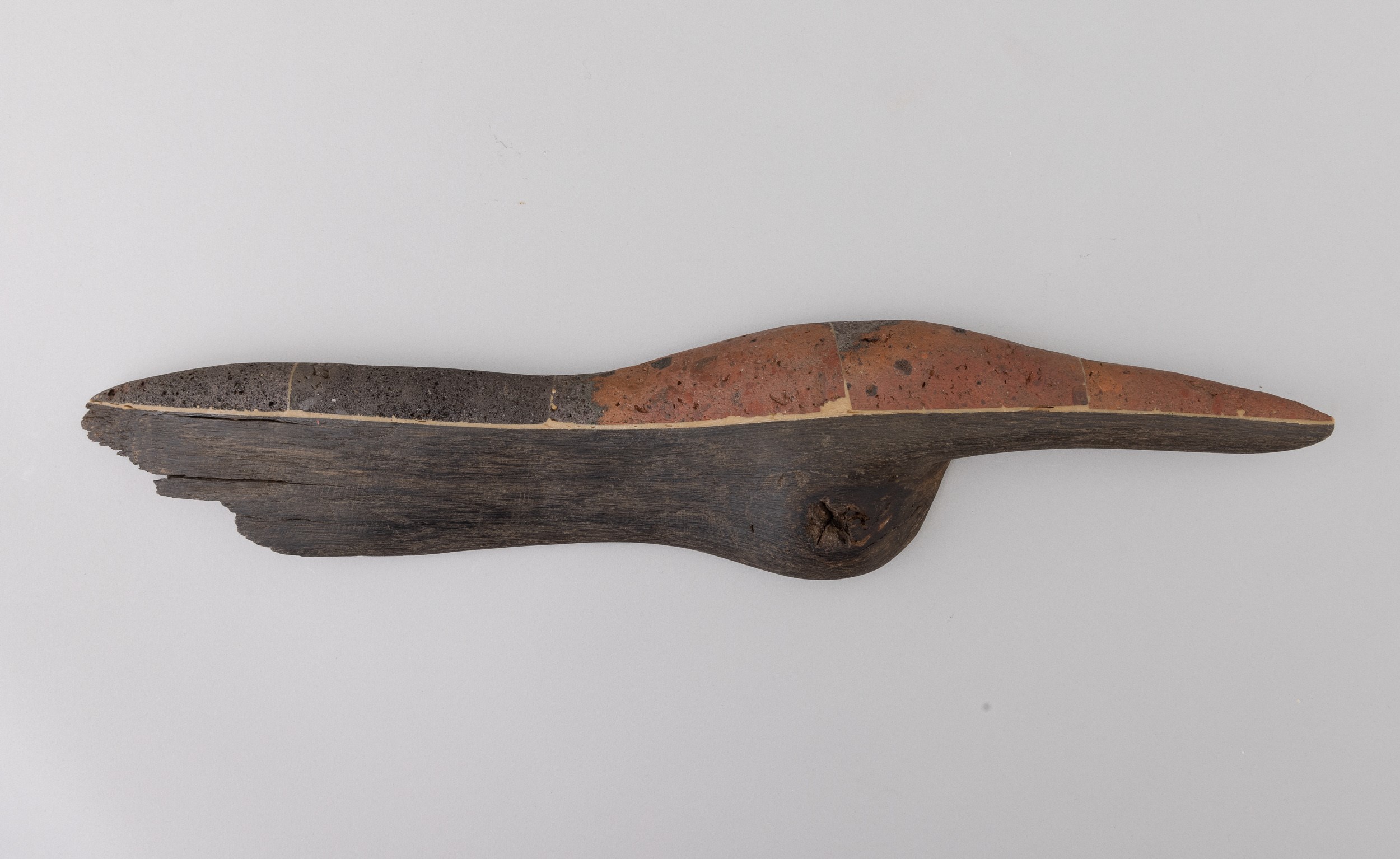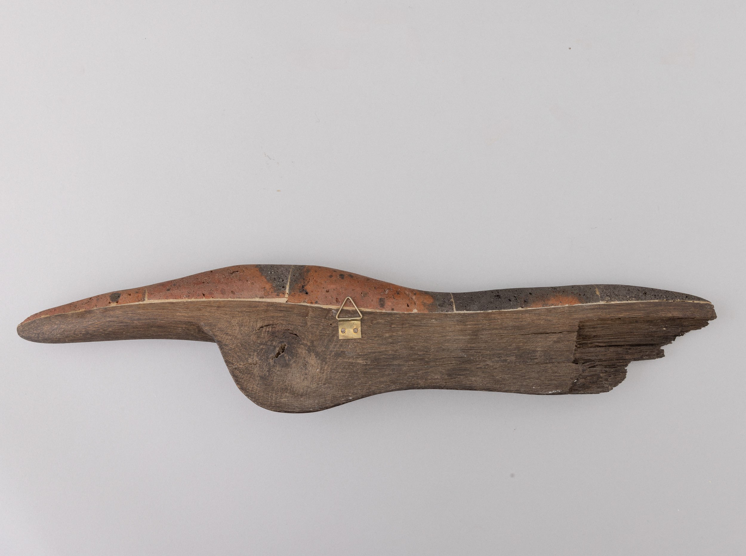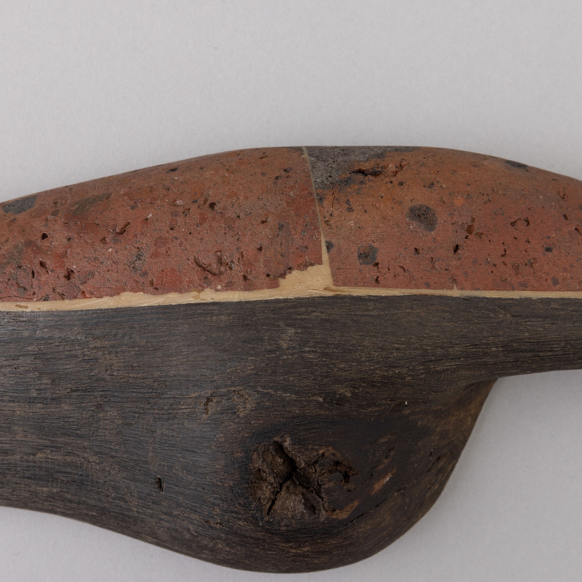 Scultura in legno e porzioni di mattoni assemblati, lisciati e sagomati a mano.