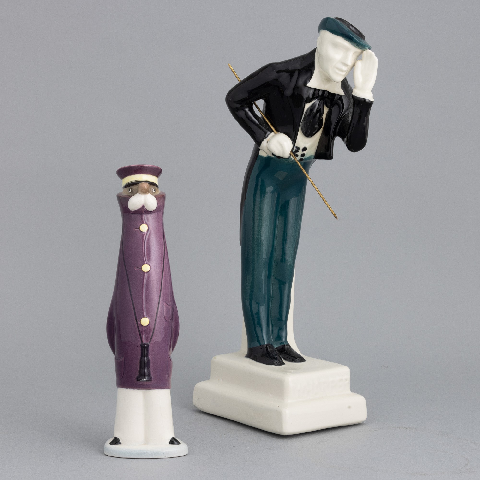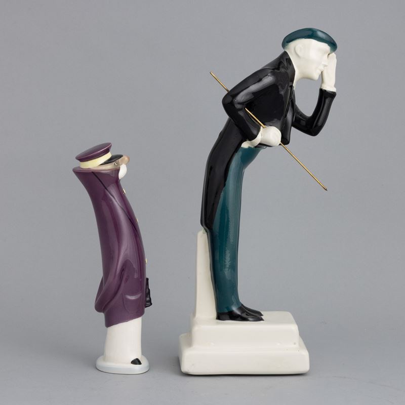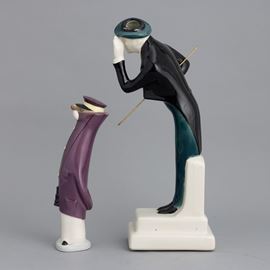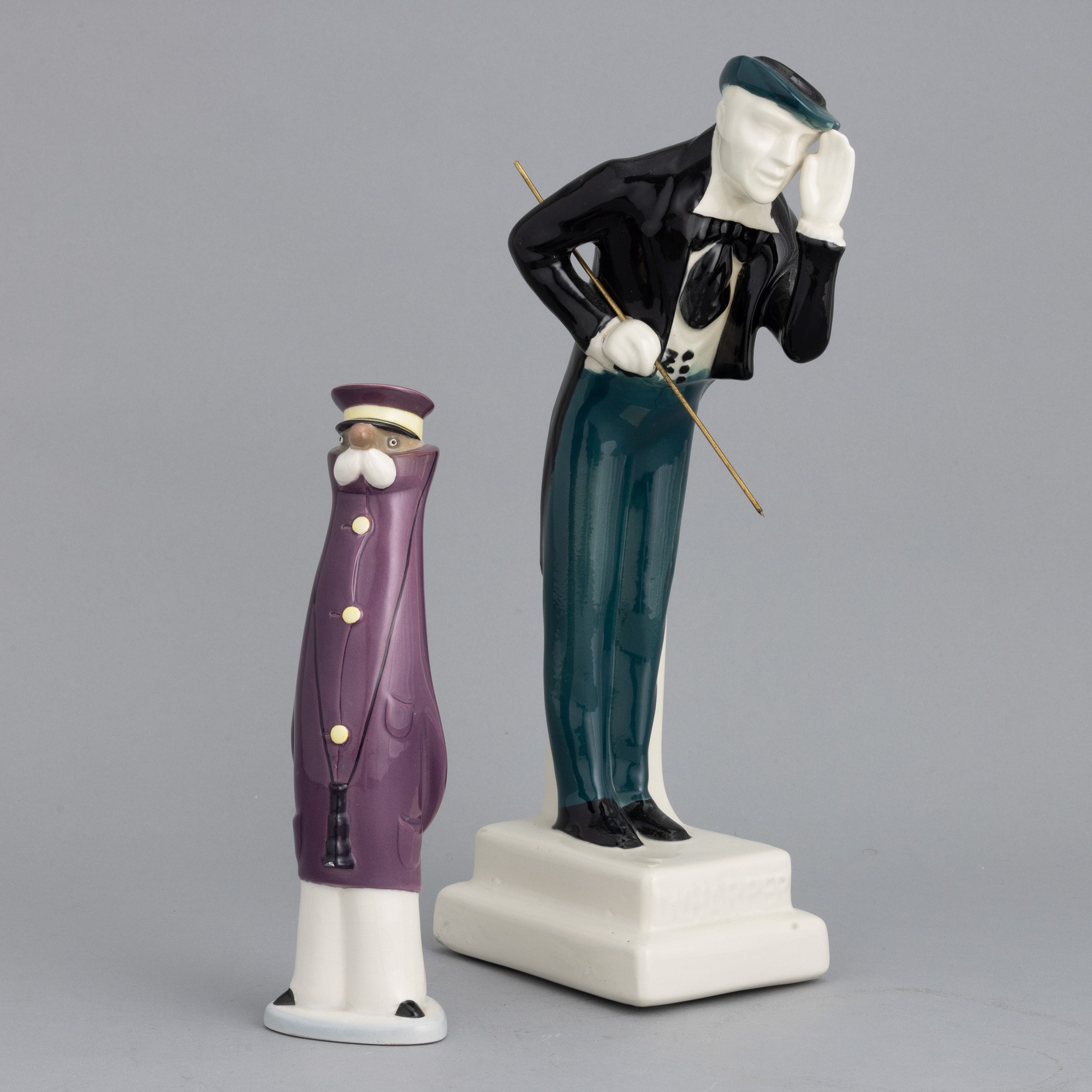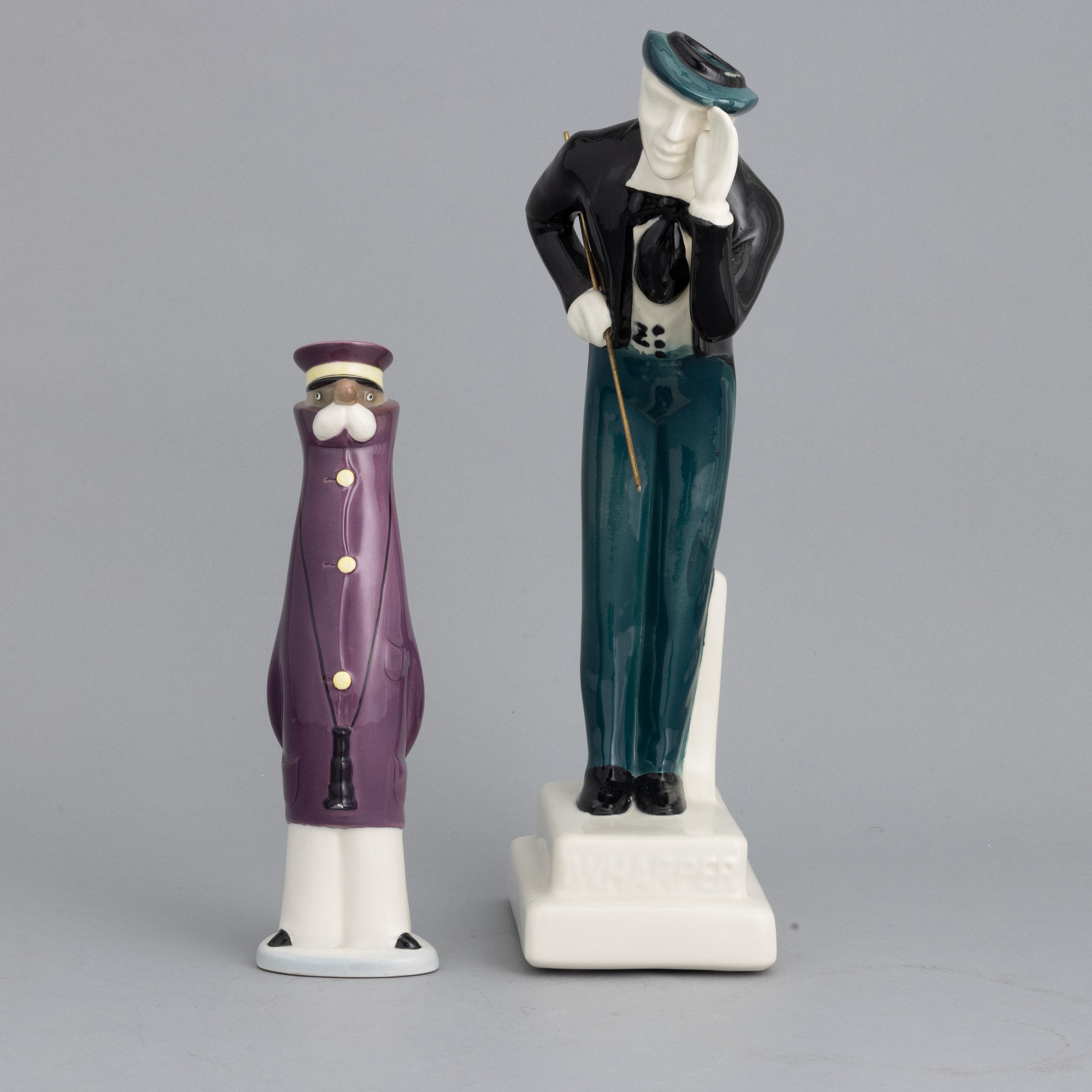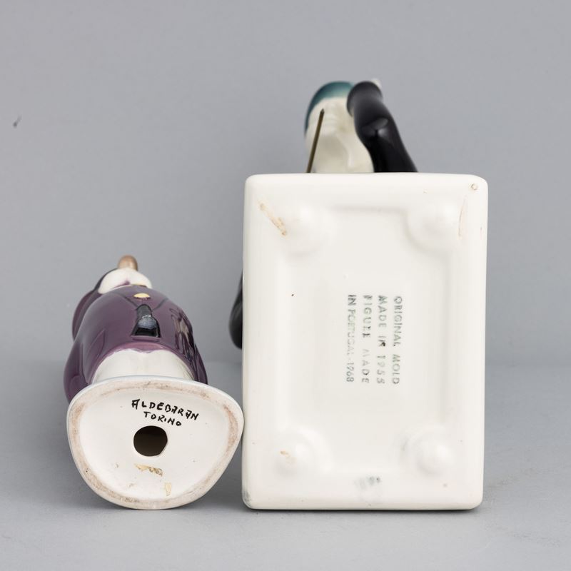 Lotto formato da due figure in terraglia a colaggio raffiguranti personaggi con decoro a smalti policromi.