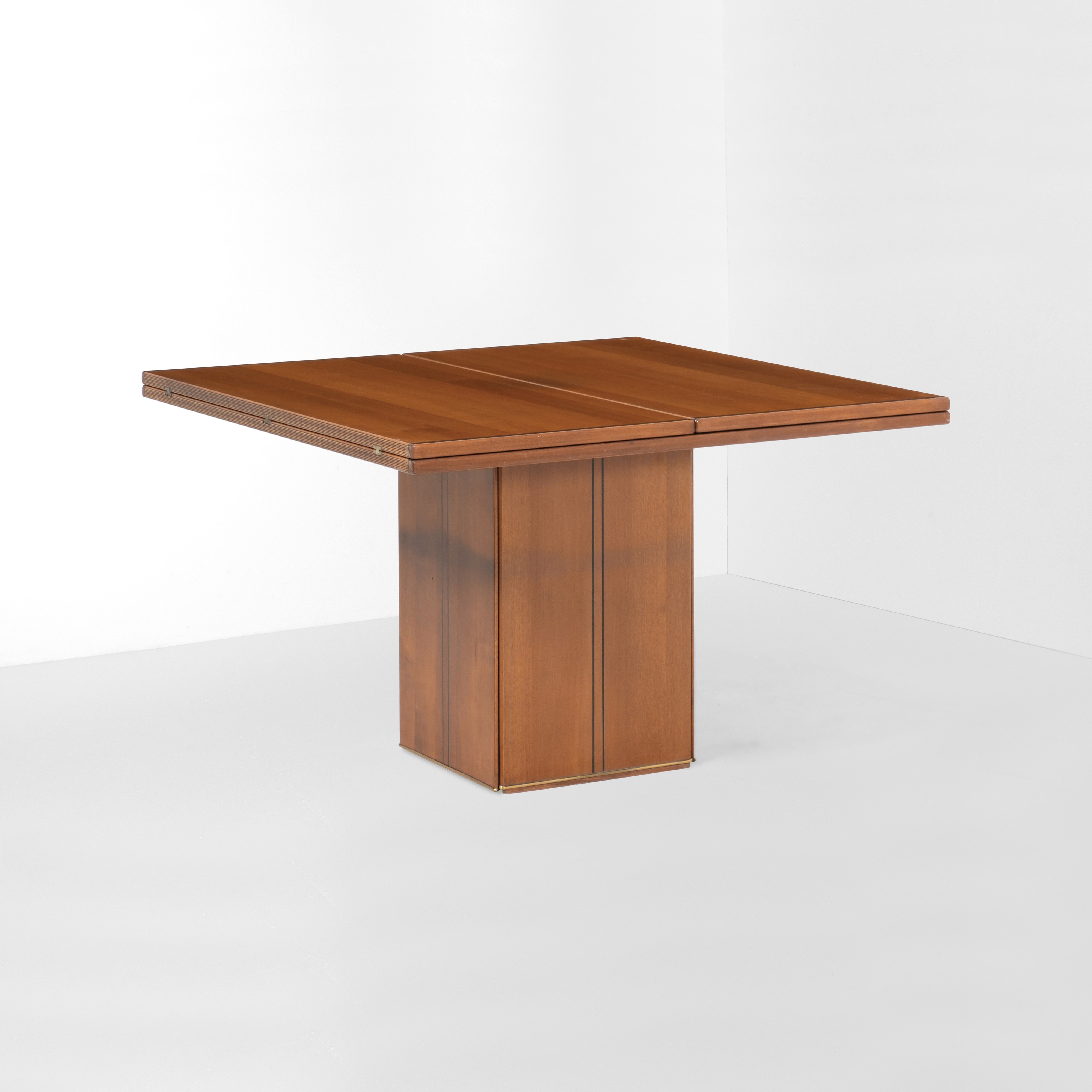 Struttura e piano in legno in diverse essenze. Dettagli in ottone.