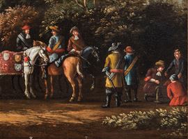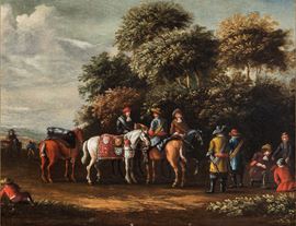 Anonimo fiammingo del XVIII secolo Sosta dei cavalli
