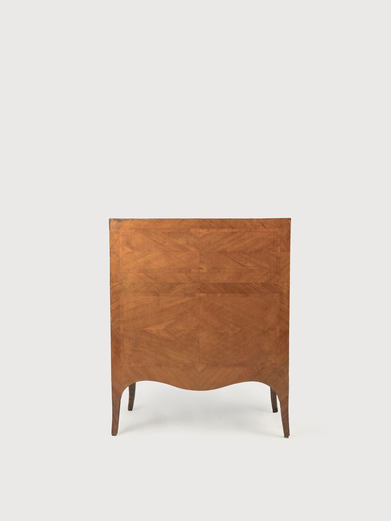 Cassettone a ribalta da centro lastronato in bois de rose, in stile siciliano del settecento