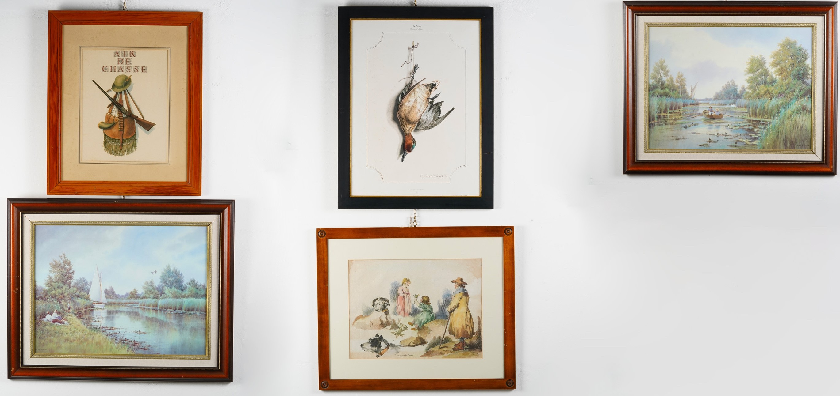 Cinque stampe con soggetti di caccia, XX secolo