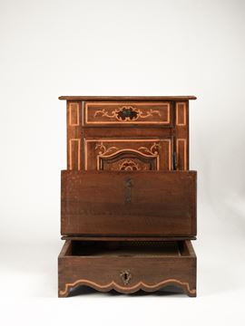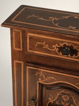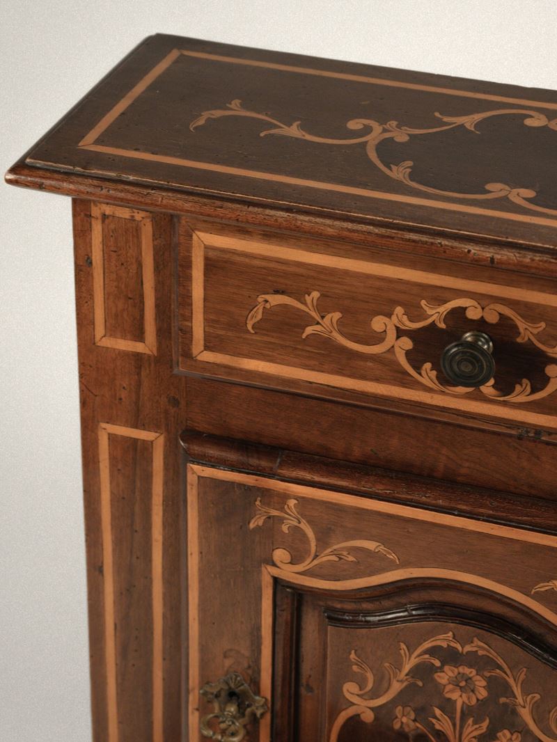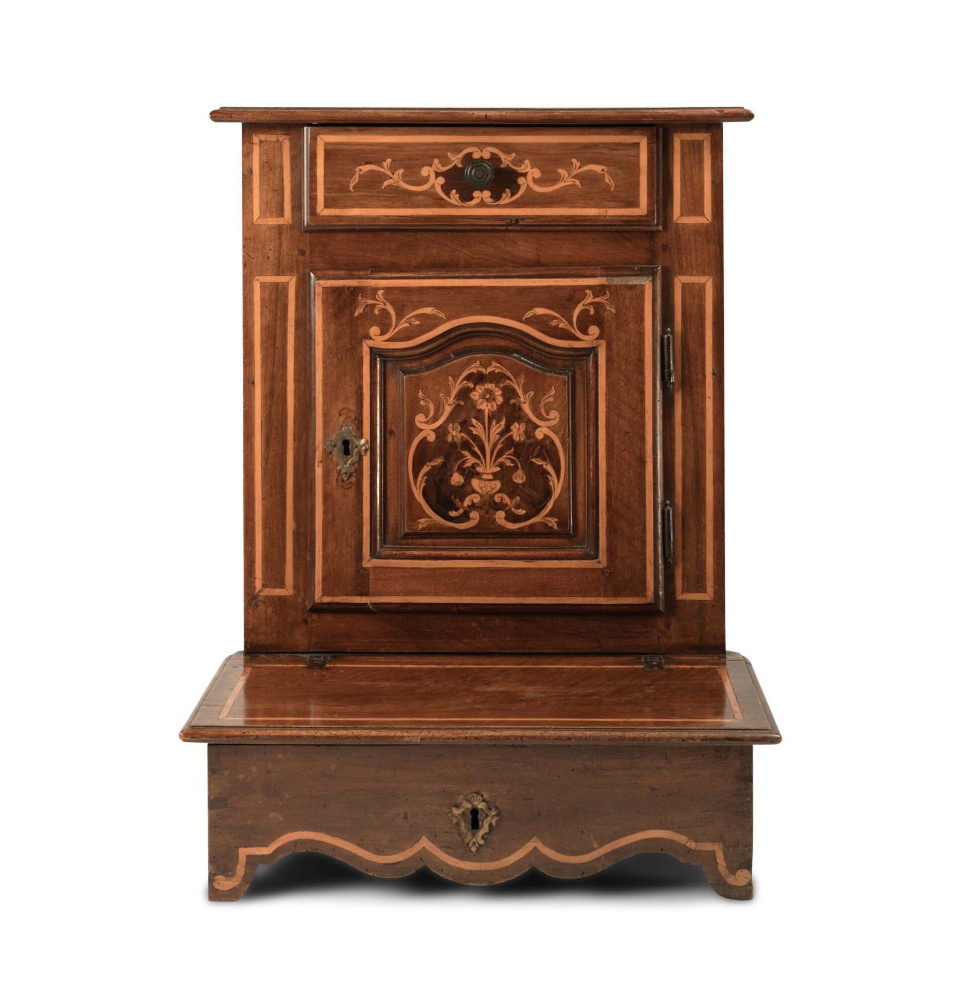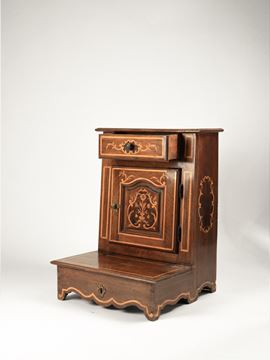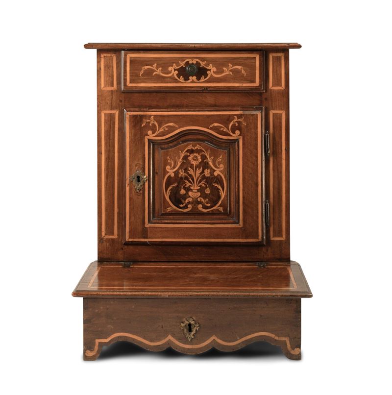 Inginocchiatoio in noce intarsiato in legni diversi, Piemonte, XVIII secolo