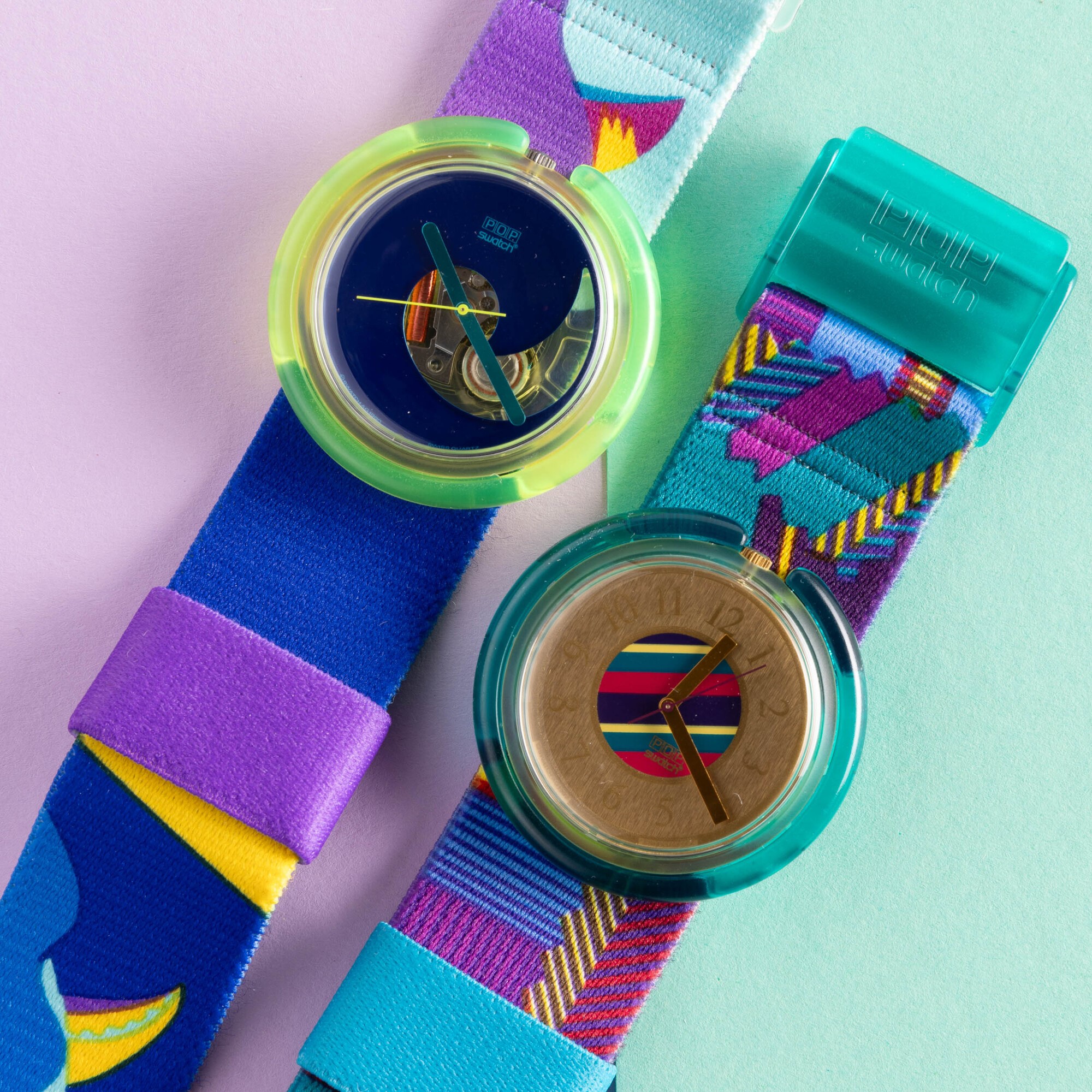 Due Pop Swatch NOS: Swatch Pop Aqua Club Swatch Pop Pitsch Patsch