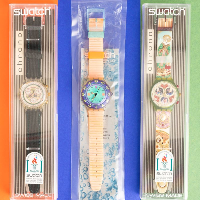 Due Swatch Chrono e uno Swatch Scuba NOS:
