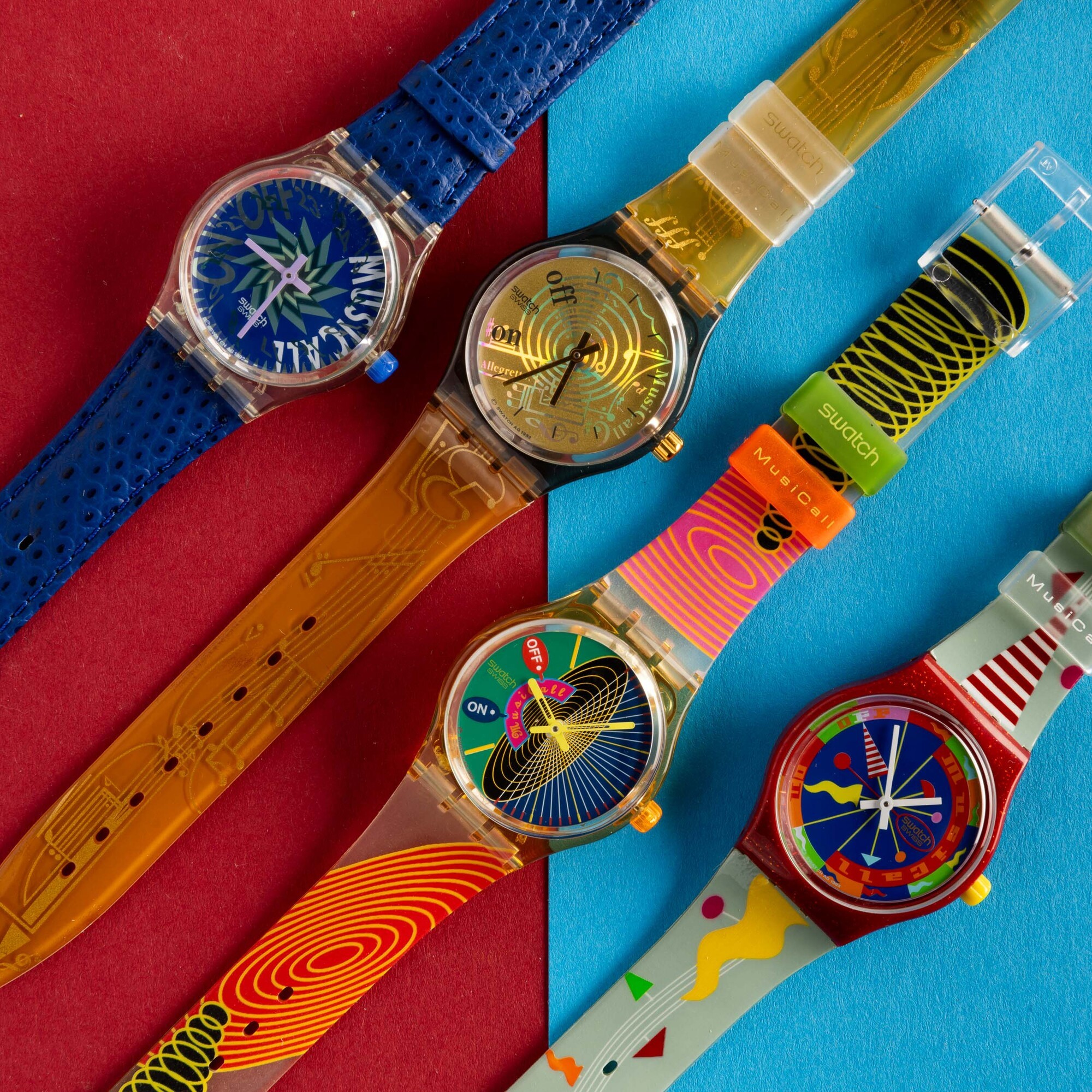 Quattro Swatch Musicall NOS: Swatch Musicall Tone in Blue Swatch Musicall Spartito Swatch Musicall Tambour Swatch Musicall [..]