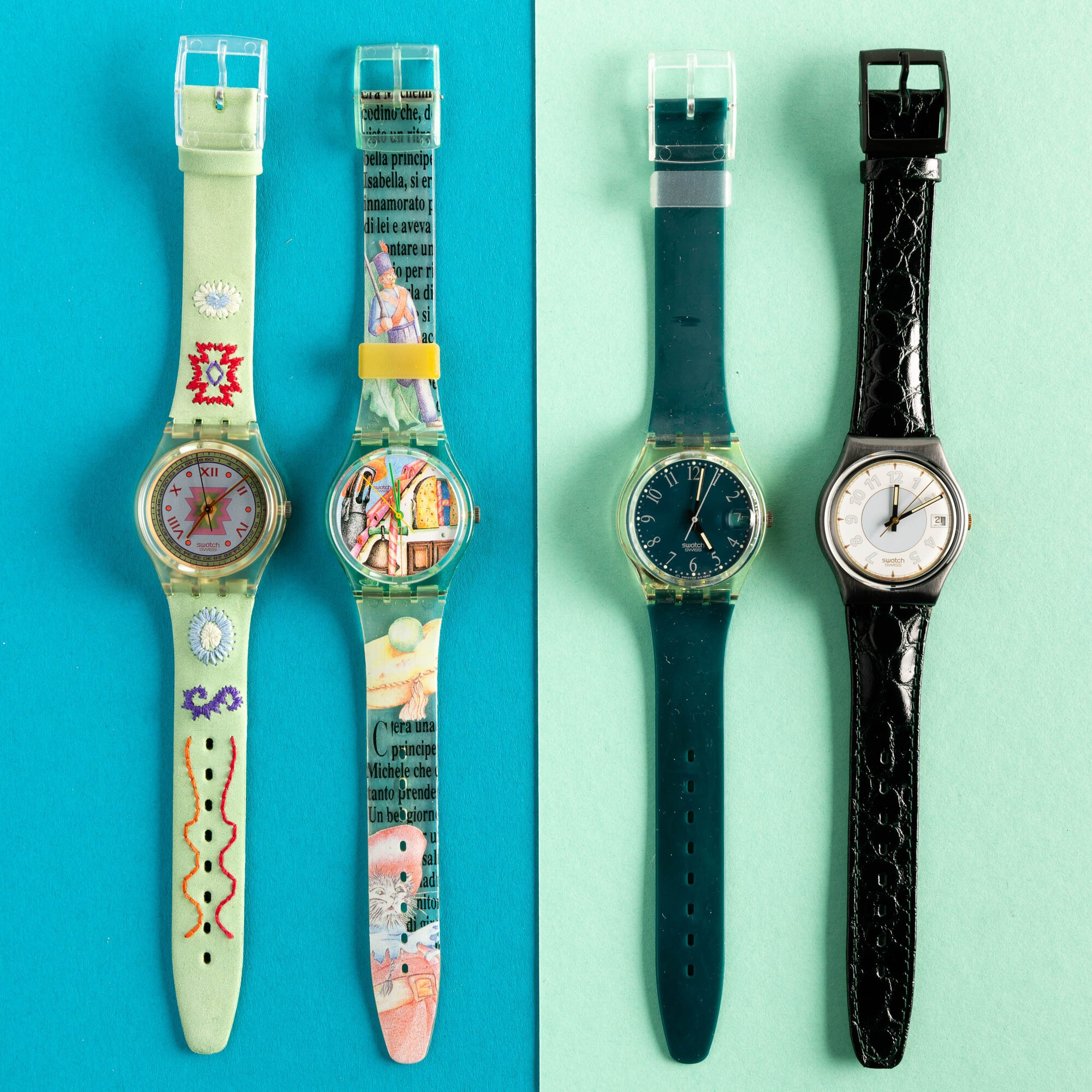 Quattro Swatch NOS: Swatch Cuzco Swatch Le Chat Botte Swatch Grune Lui Swatch George