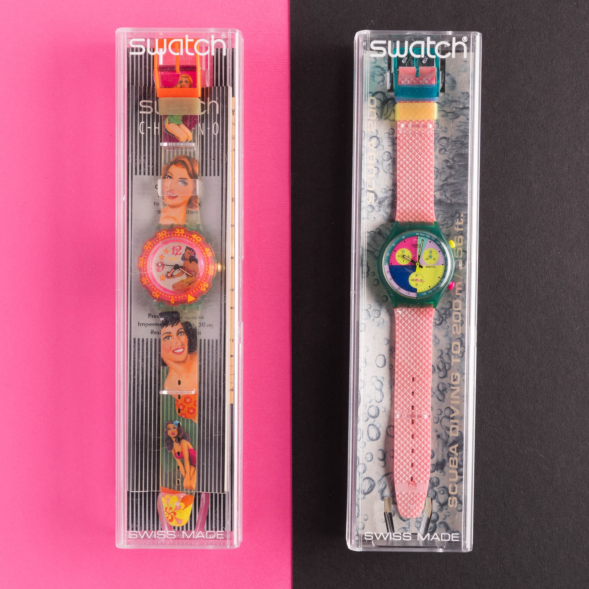 Swatch Chrono e Scuba NOS: Swatch Scuba Beach Virgin Swatch Chrono Flash Arrow