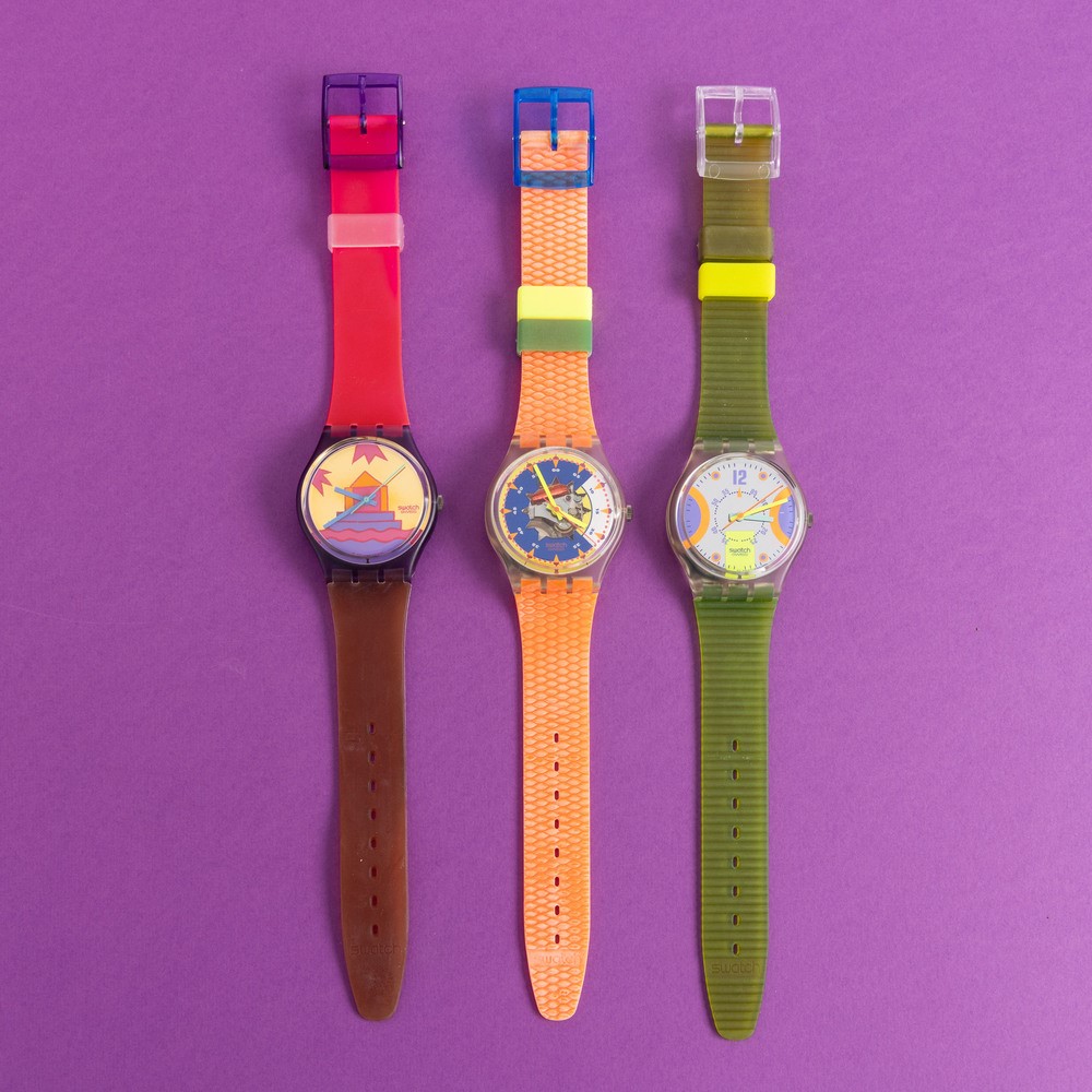 Tre Swatch NOS: Swatch Pink Avis Swatch Sol Swatch Stream