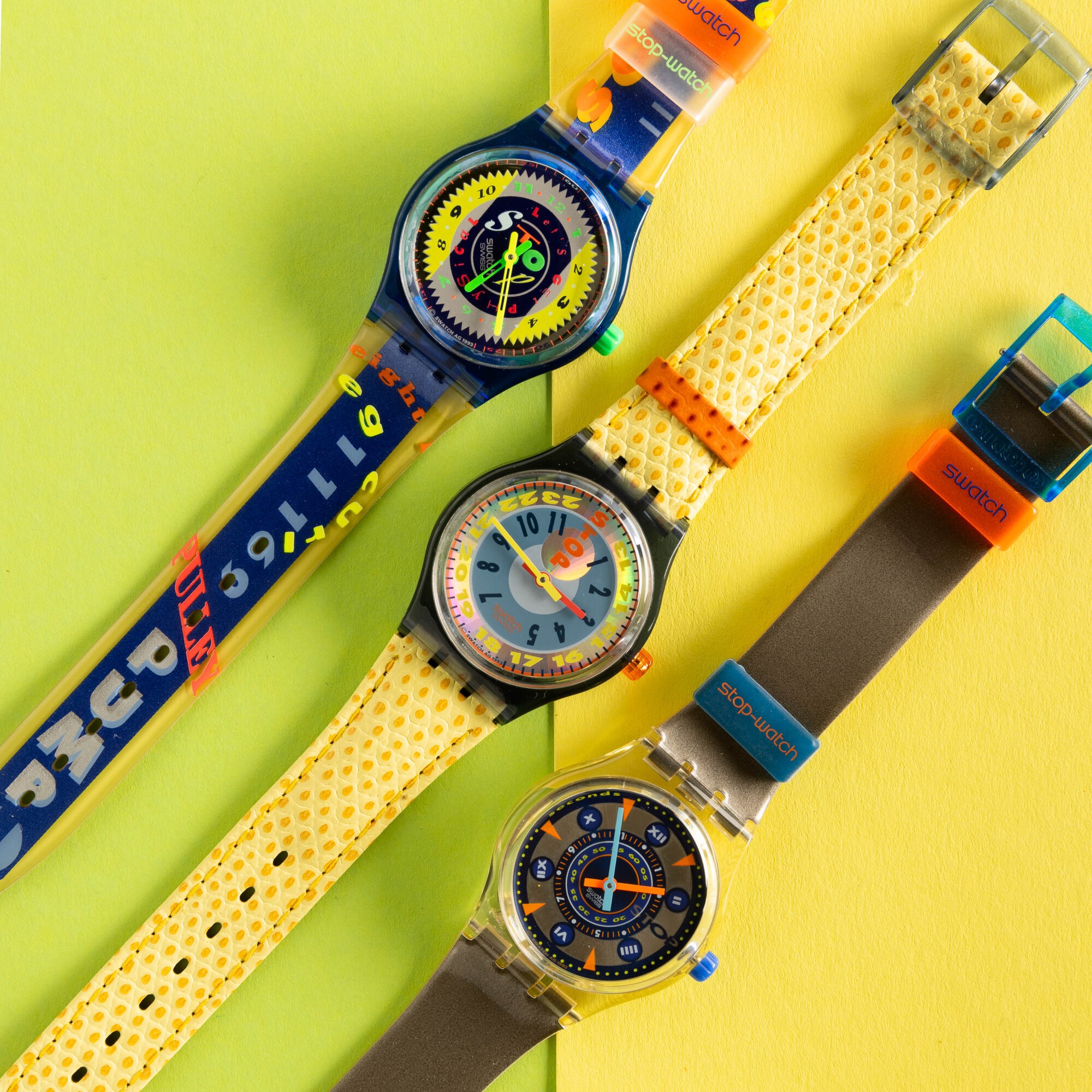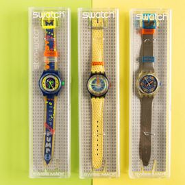 Tre Swatch NOS: Swatch Time Cup Swatch Yellow Star Swatch Metal Flash