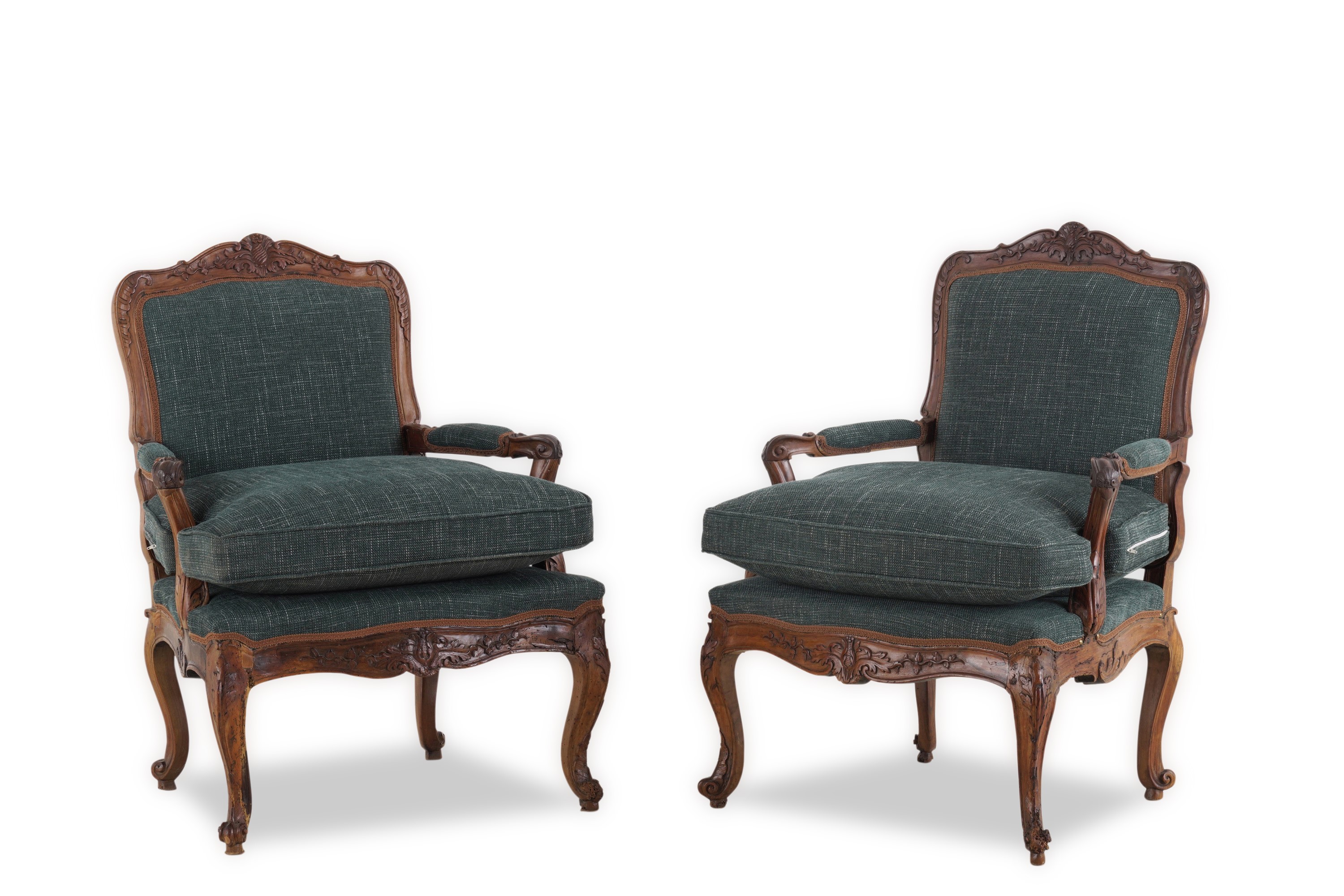 Coppia di bergères in legno intagliato. Francia, XVIII secolo