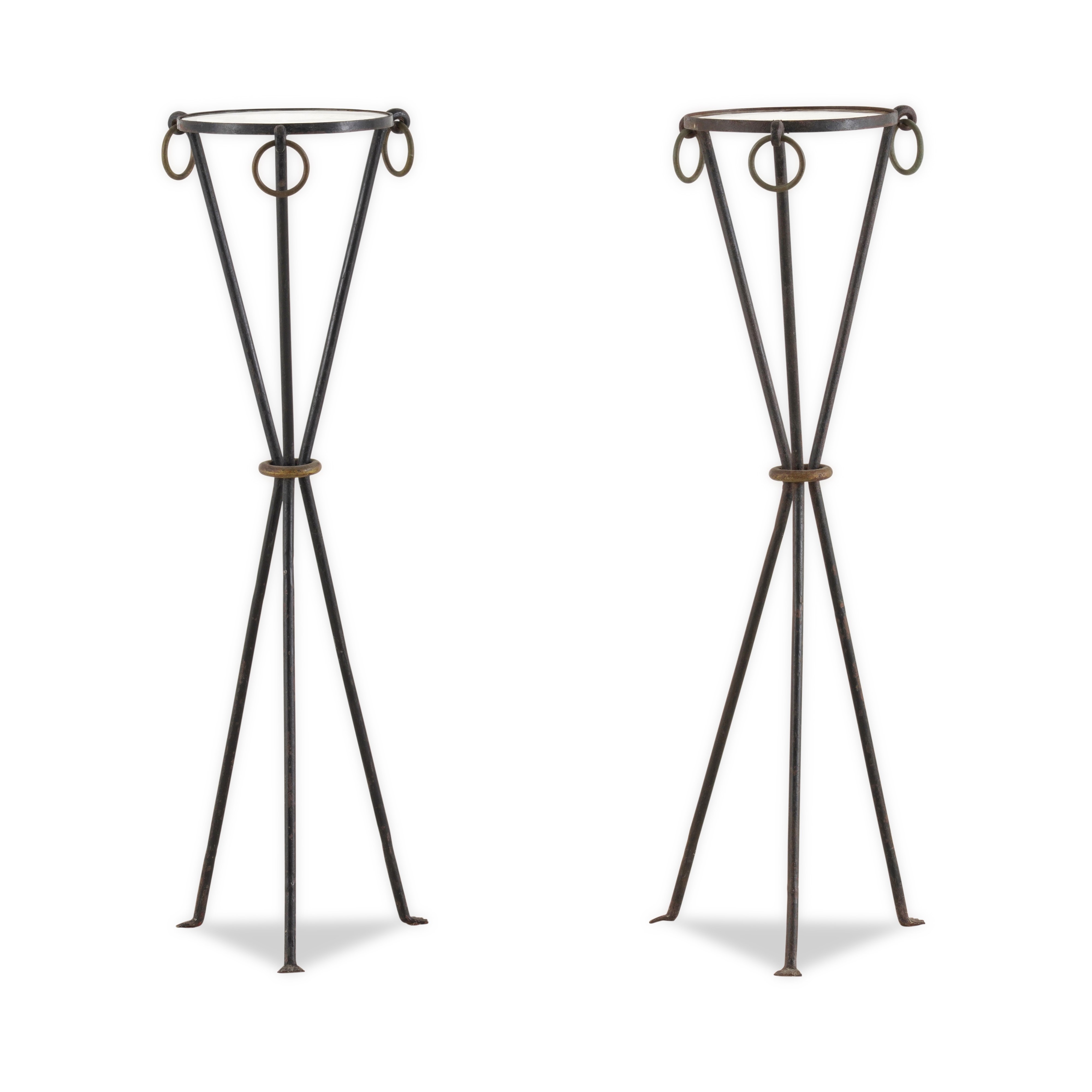 Coppia di gueridons in ferro battuto. XX secolo
