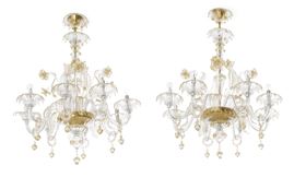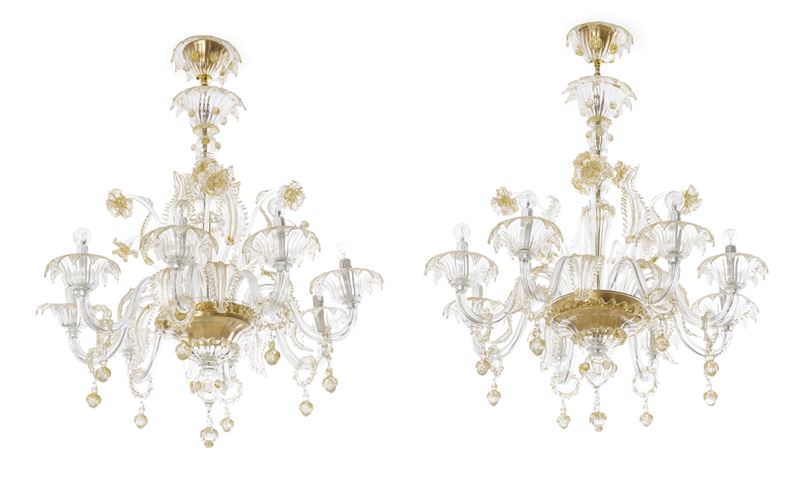 Coppia di lampadari in vetro. Murano, XX secolo