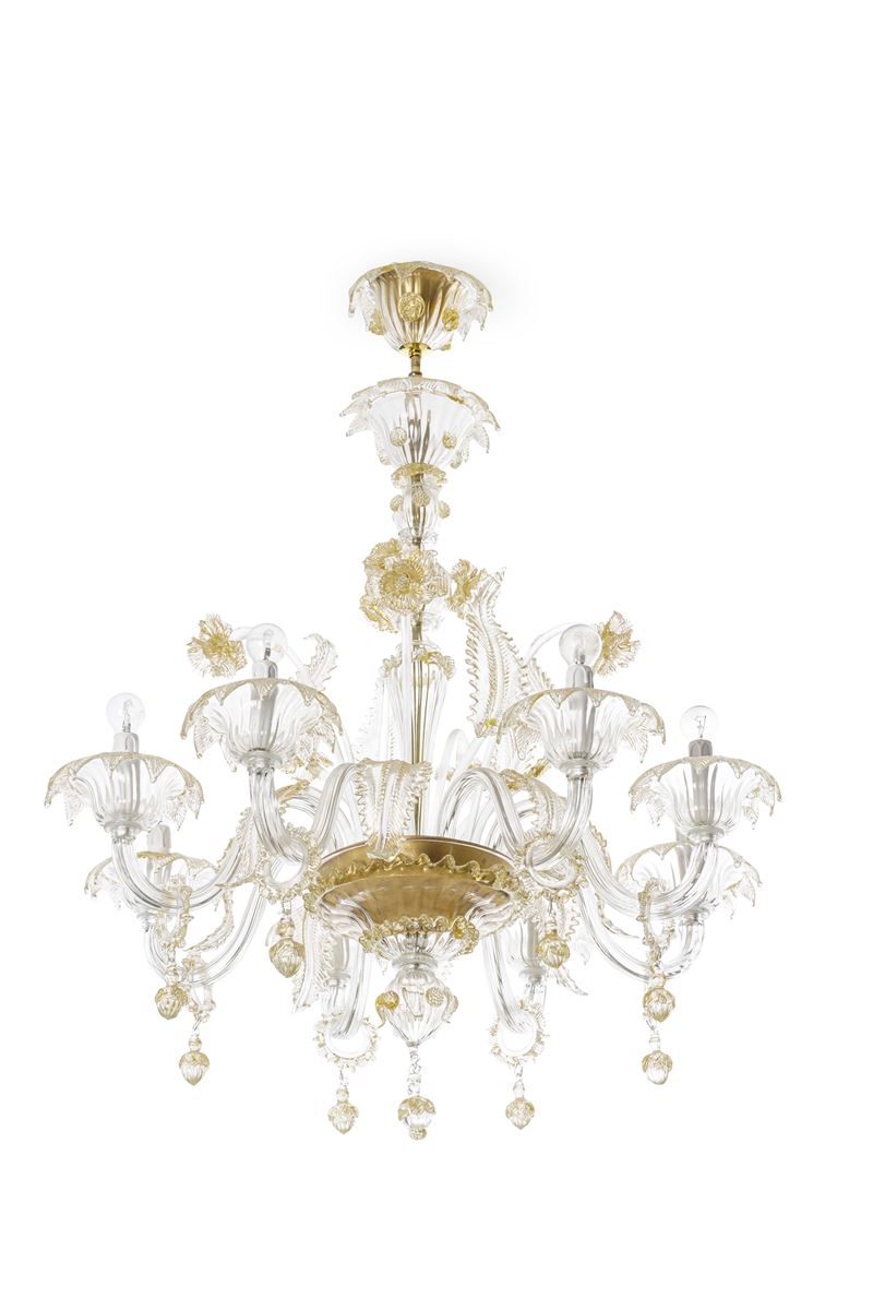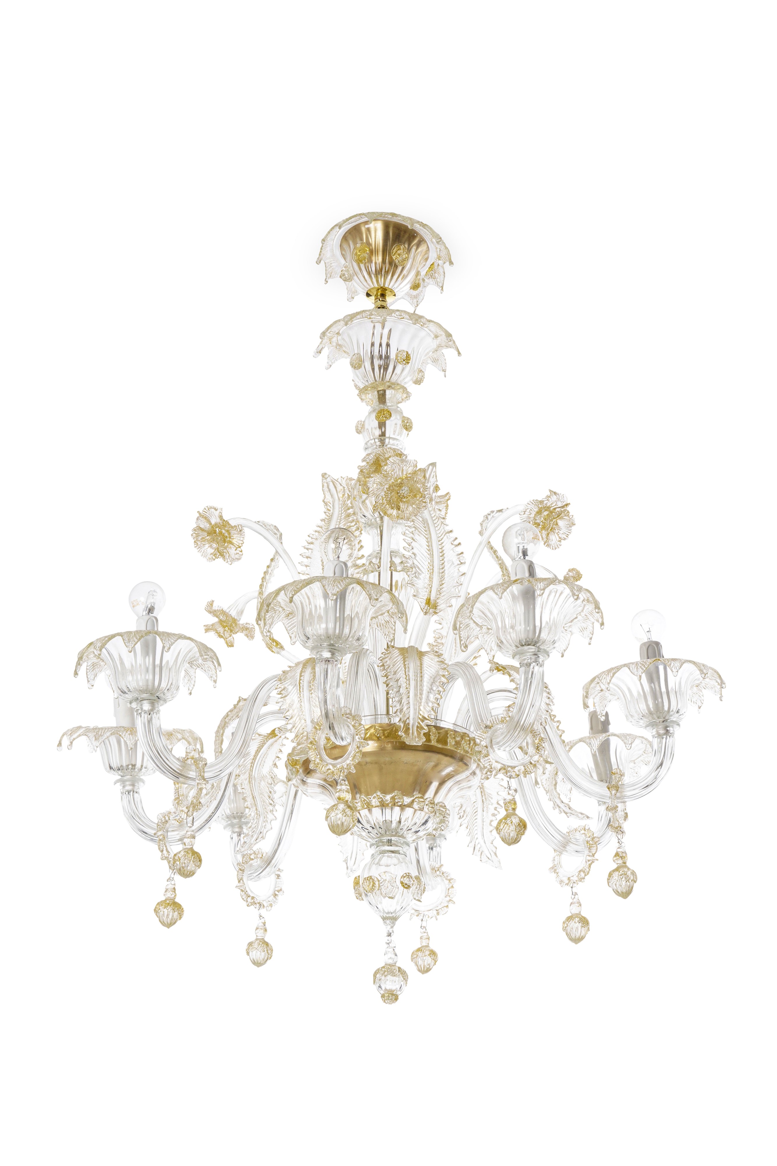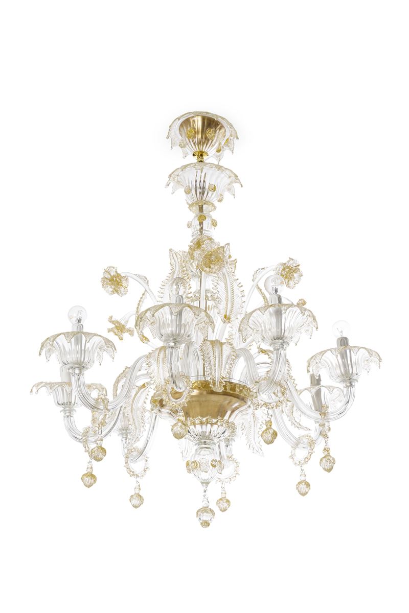 A otto bracci, con elementi decorativi a foglie e fiori, applicazioni in vetro dorato
