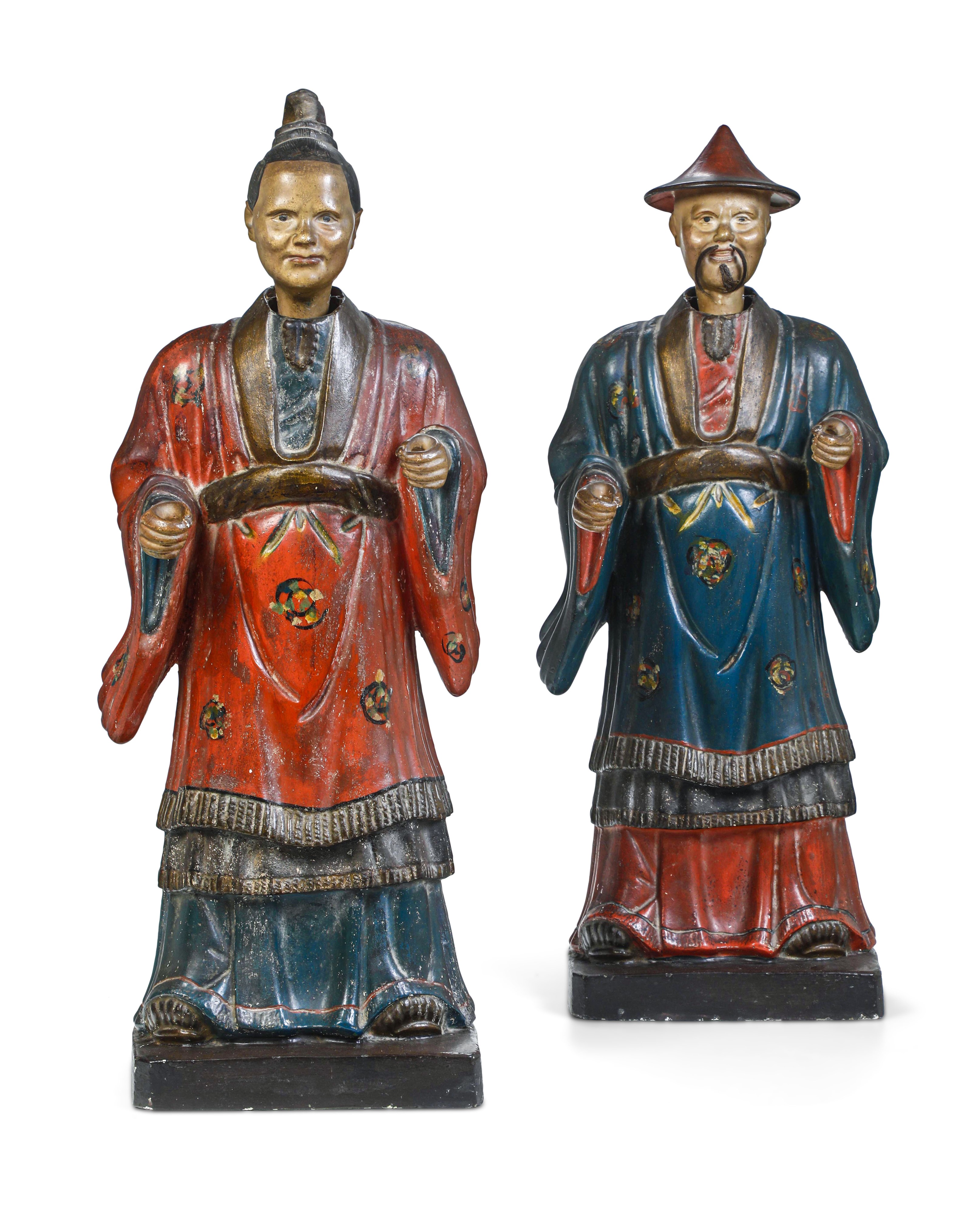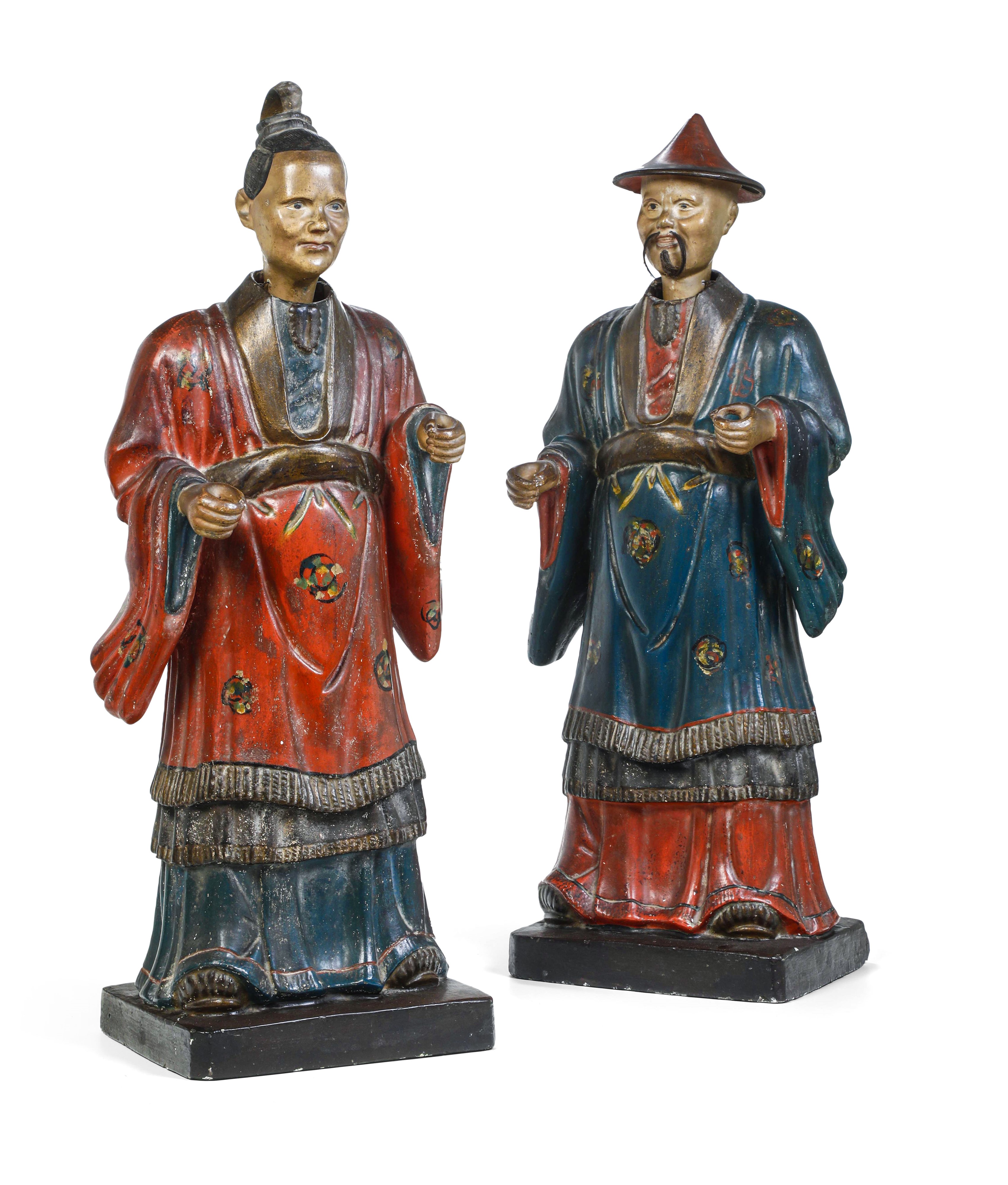 Coppia grandi di magot in stucco dipinto. Piemonte, seconda metà del XVIII secolo