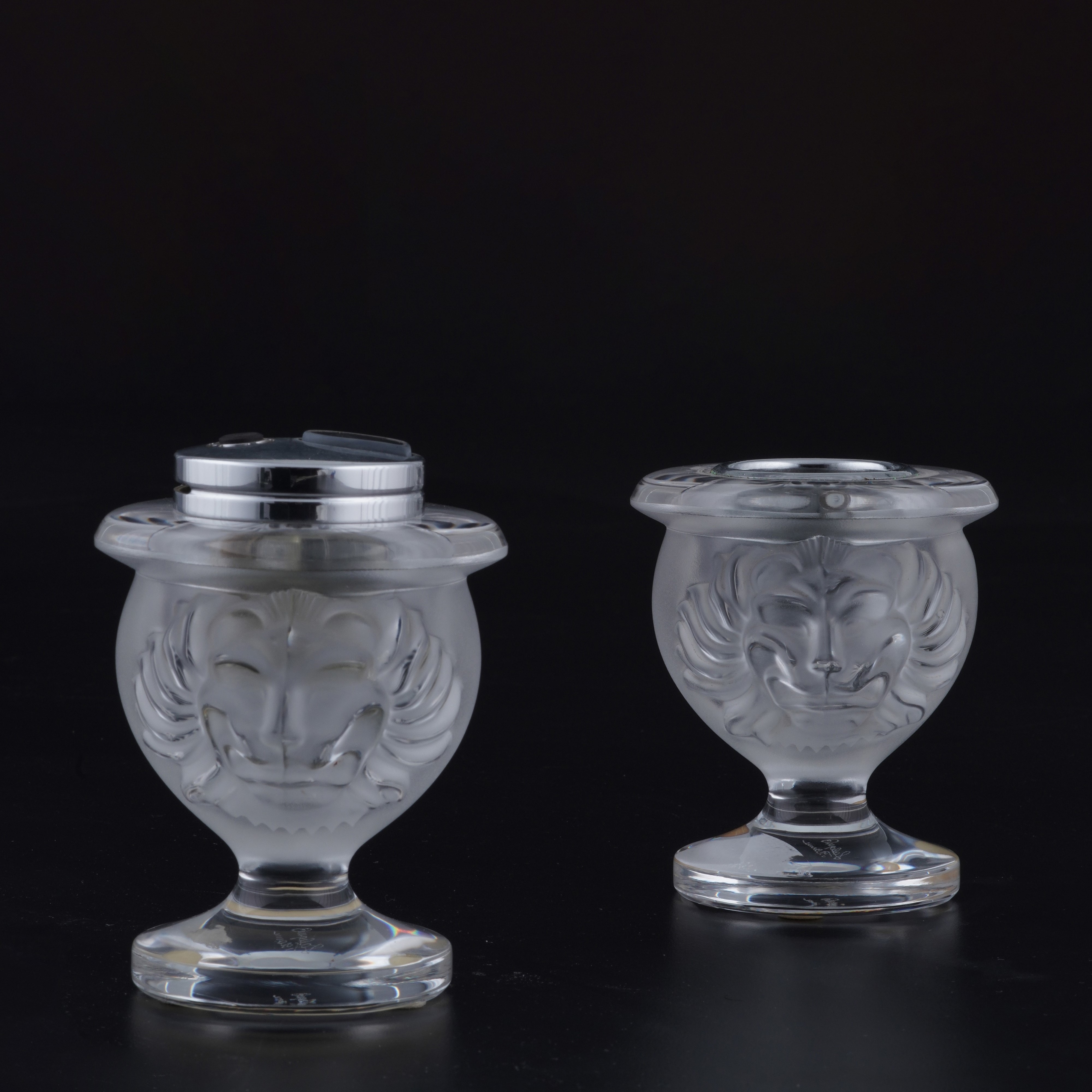 Due accendini da tavolo Tete de Lion. Lalique, Francia, XX secolo