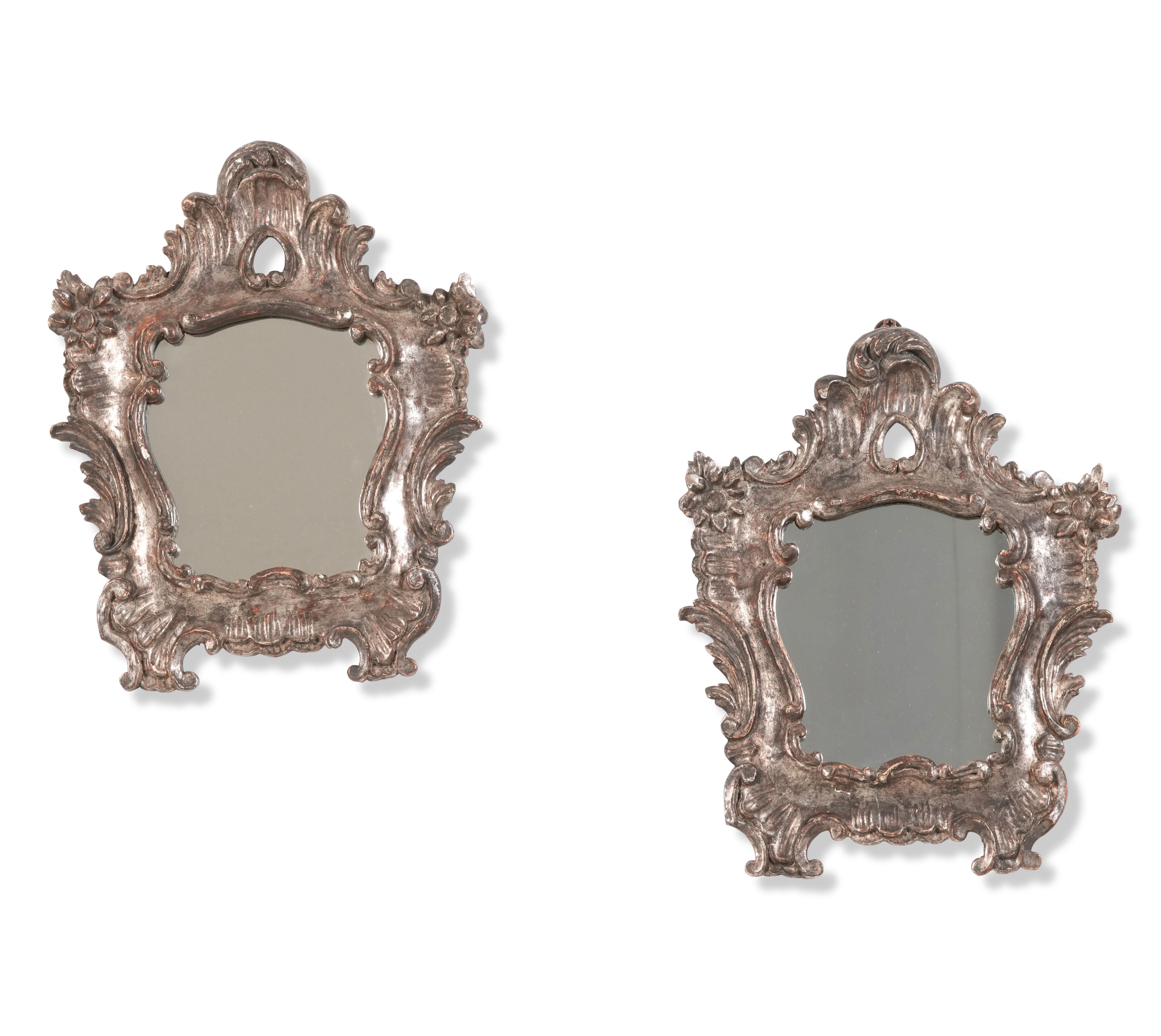 Cornici rocaille con motivi fitomorfi e a pellacce, legno intagliato con argentatura non coeva