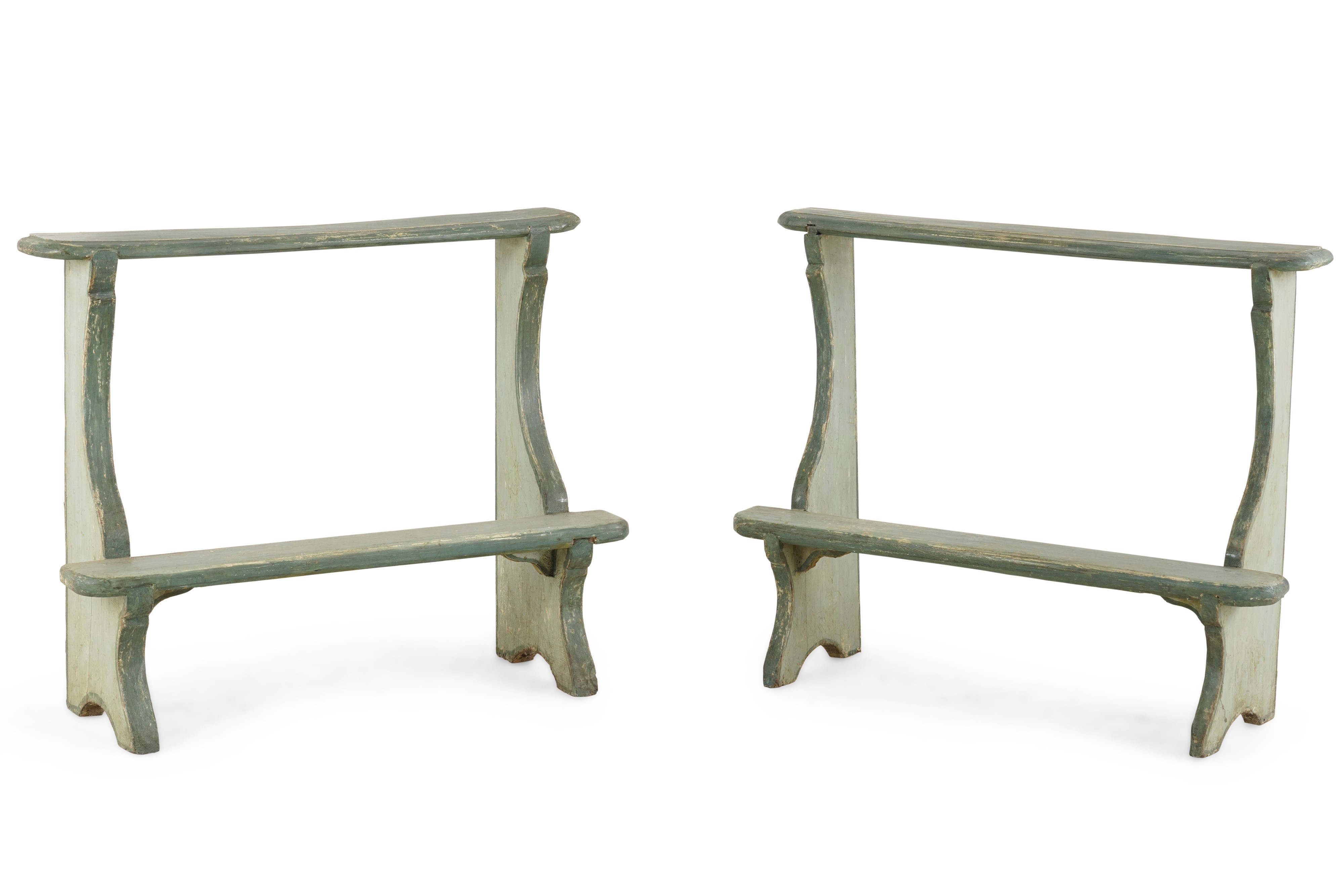 Due inginocchiatoi in legno intagliato e laccato. XVIII-XIX secolo