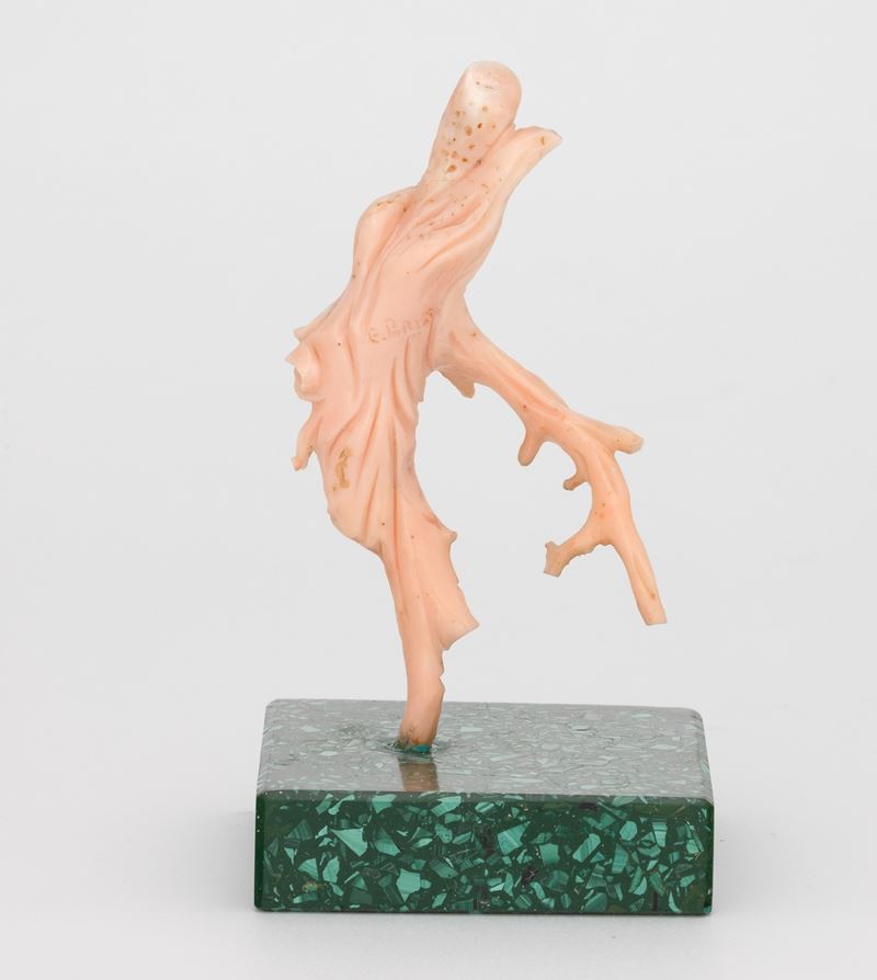 corallo rosa su base in malachite