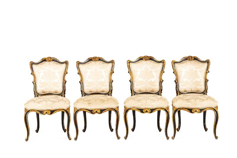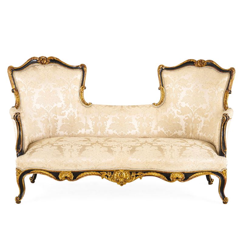 Fornitura da salotto in legno laccato e dorato. XIX secolo