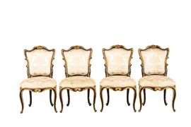 Composta da divano, quattro sedie e due poltrone. Gambe e braccioli mossi, sedute e schienali imbottiti, decori con motivi vegetali a rilievo (lacca e doratura di epoca posteriore)