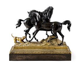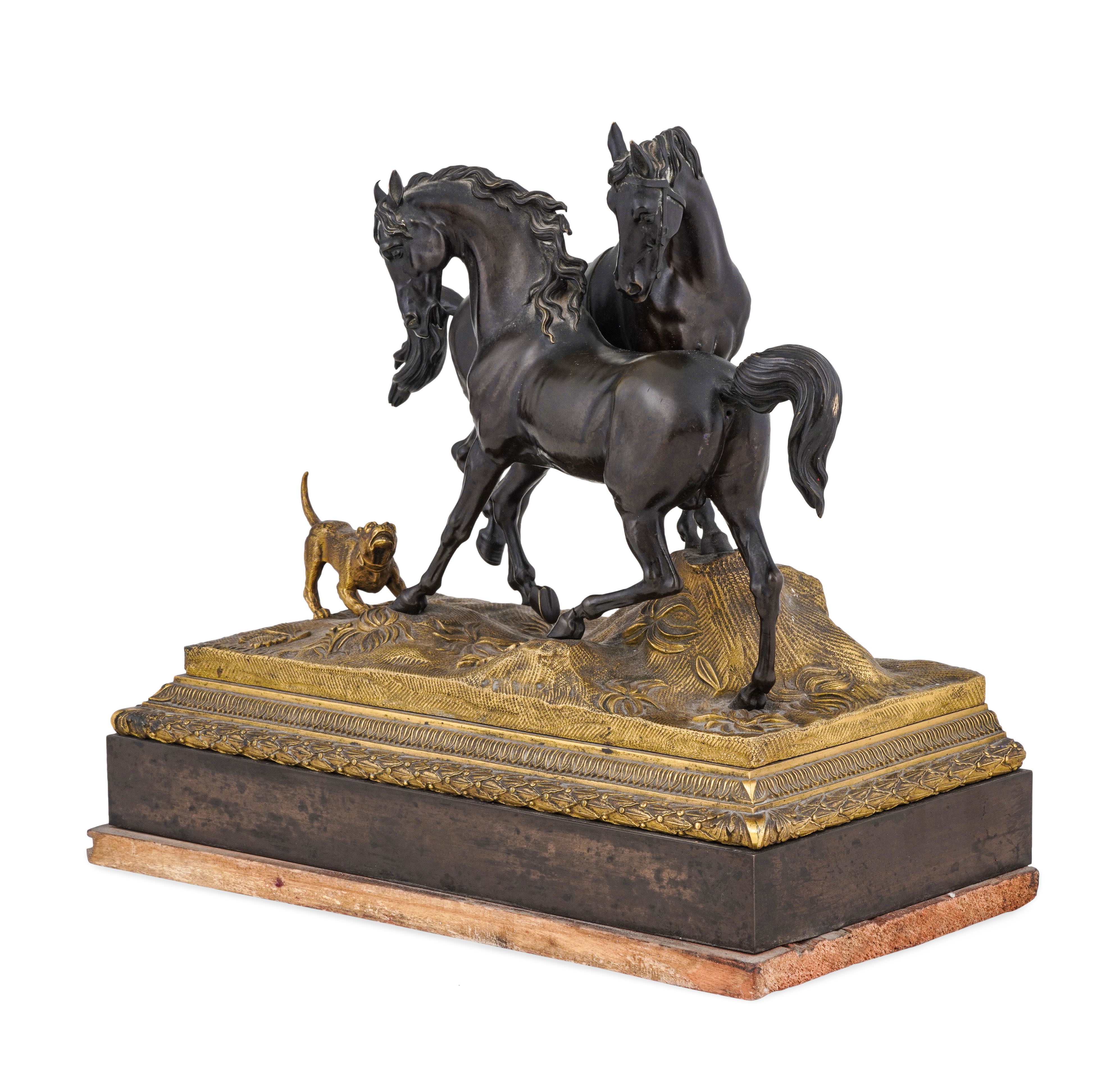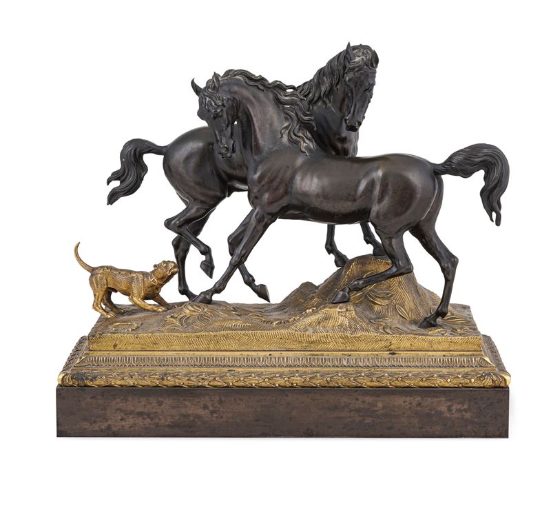 Gruppo con cavalli e cane. Da un modello di Pierre-Jules Mène, Francia seconda metà del XIX secolo
