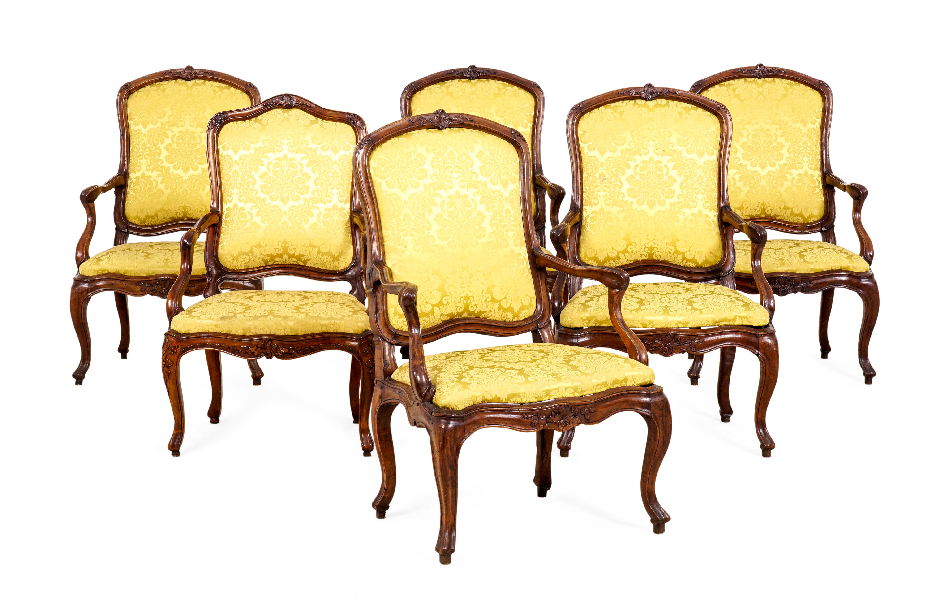 Gruppo di cinque poltrone Luigi XV. Genova, XVIII secolo