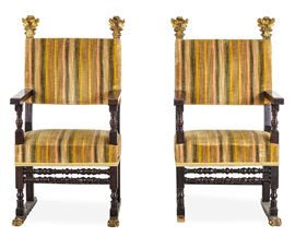 Gruppo di quattro seggioloni in noce. Italia settentrionale, XVII secolo