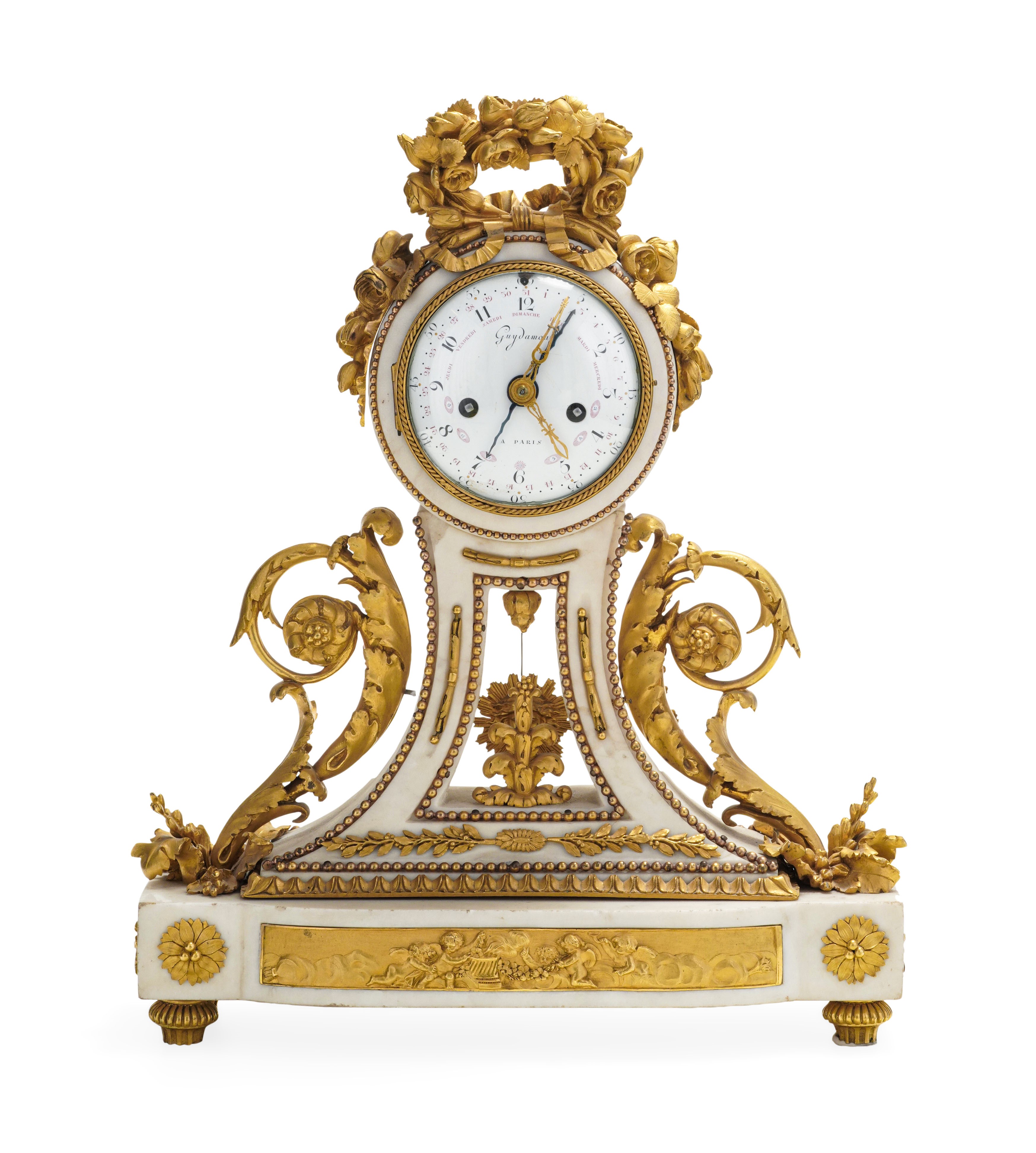 Orologio da tavolo in marmo e bronzo dorato. Francia, fine XVIII secolo