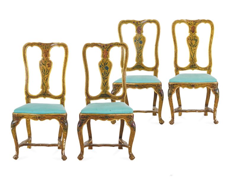 Quattro sedie Luigi XV in legno intagliato. Venezia, XVIII secolo