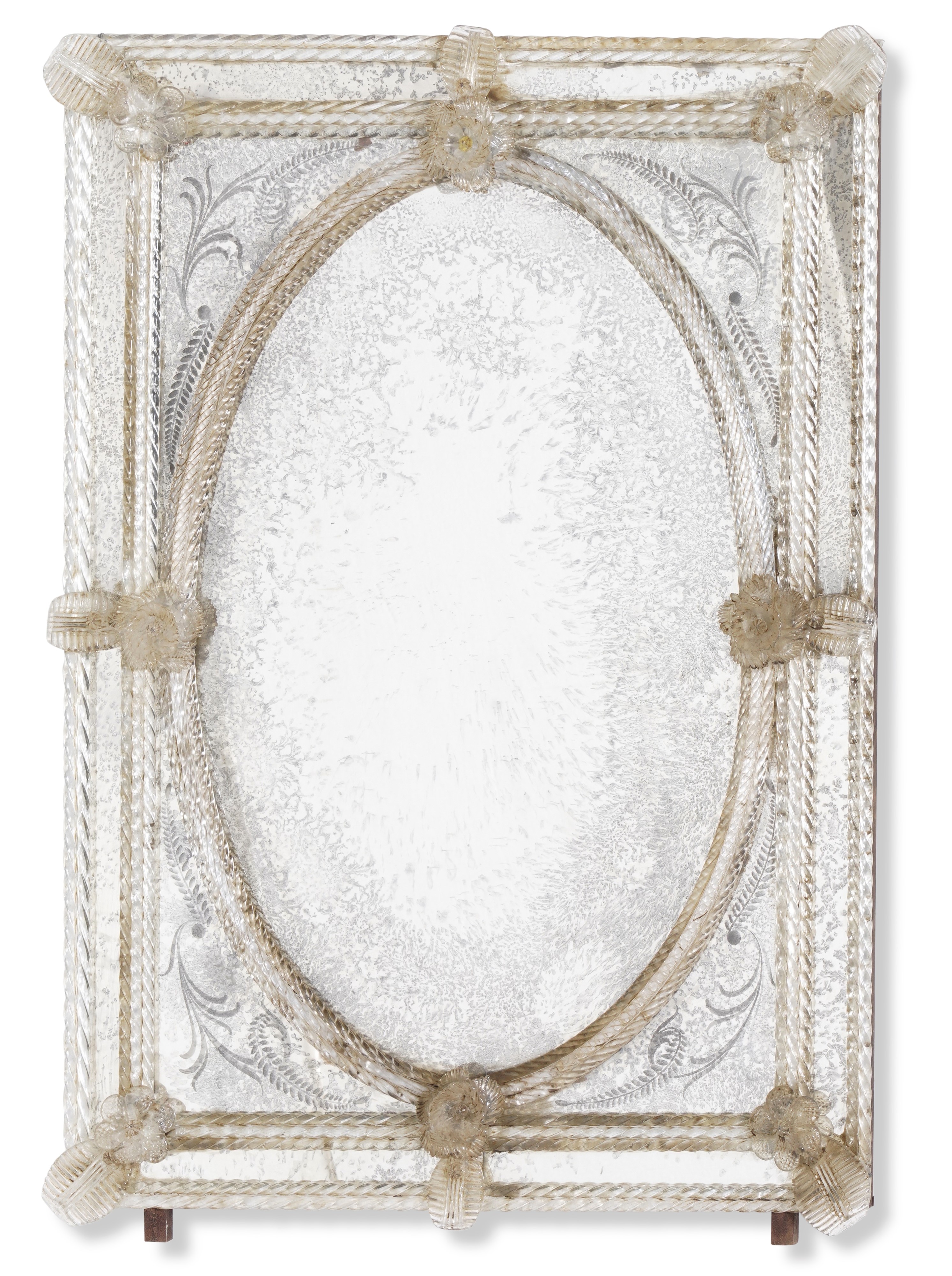Cornice a riserva ovale con specchi incisi e applicazioni decorative a foglie e fiori