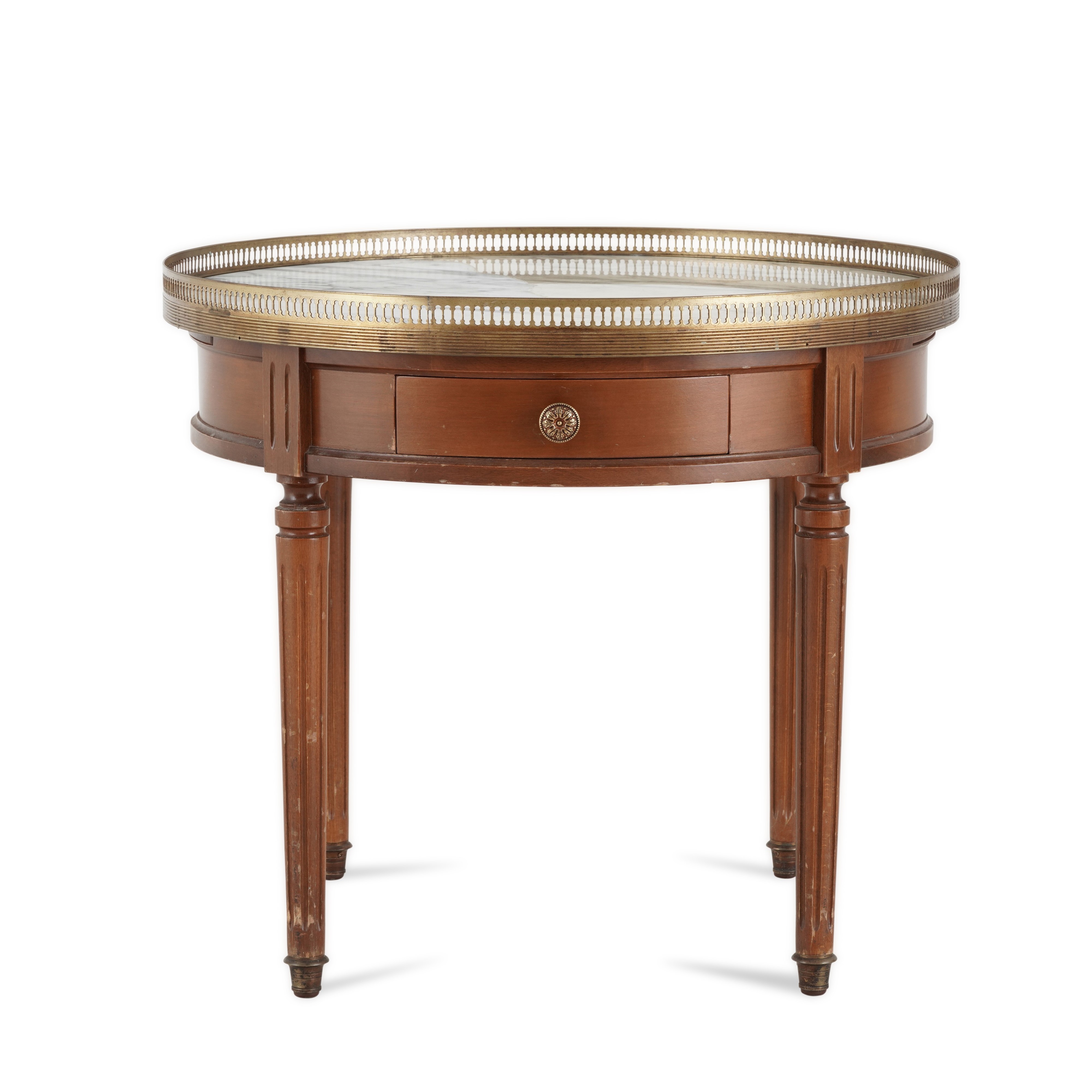 Due cassetti e due tiretti nella fascia, piano in marmo con ringhierina traforata, gambe troncoconiche scanalate