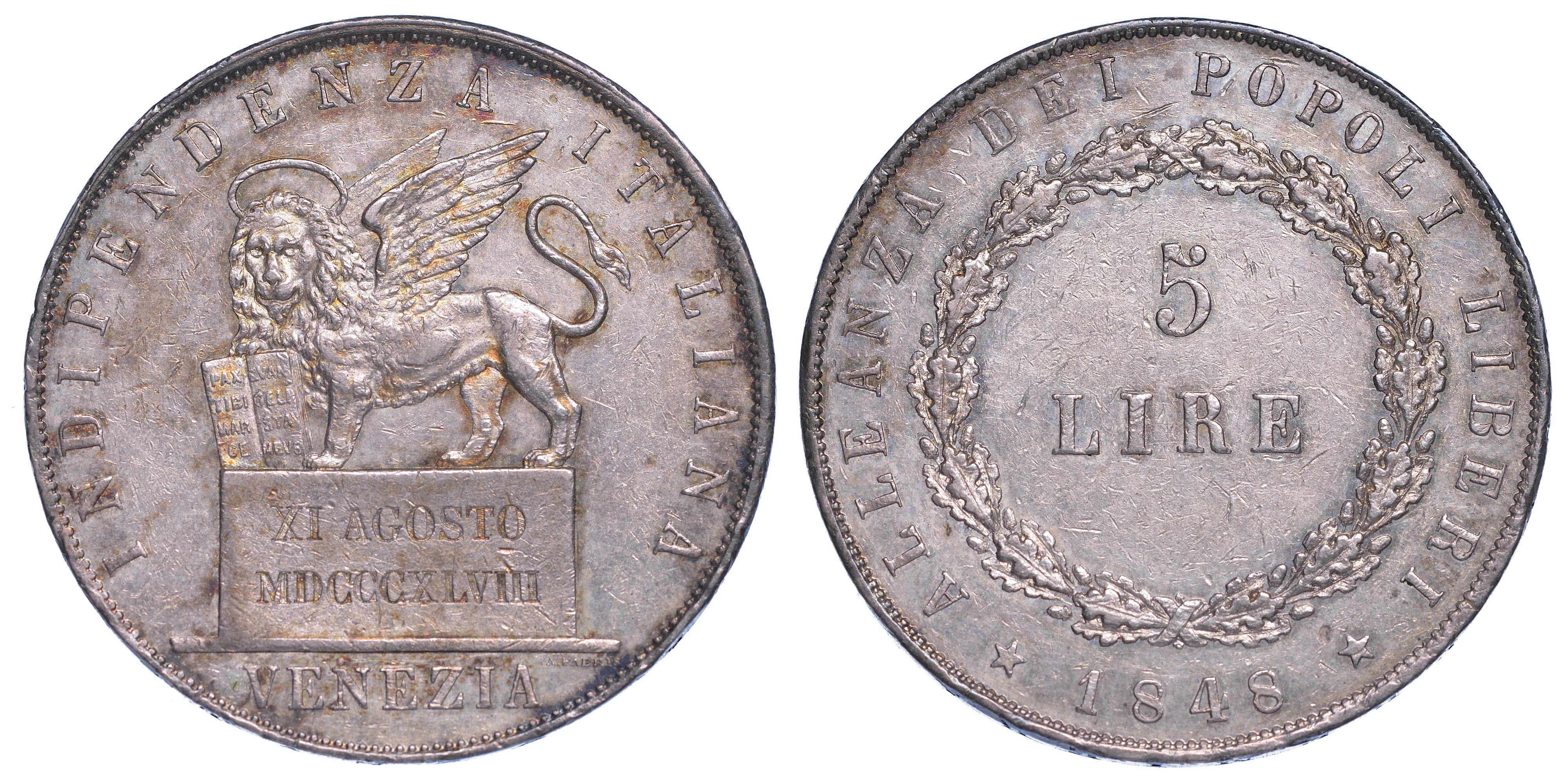 GOVERNO PROVVISORIO DI VENEZIA, 1848-1849. 5 Lire 1848 (II tipo).