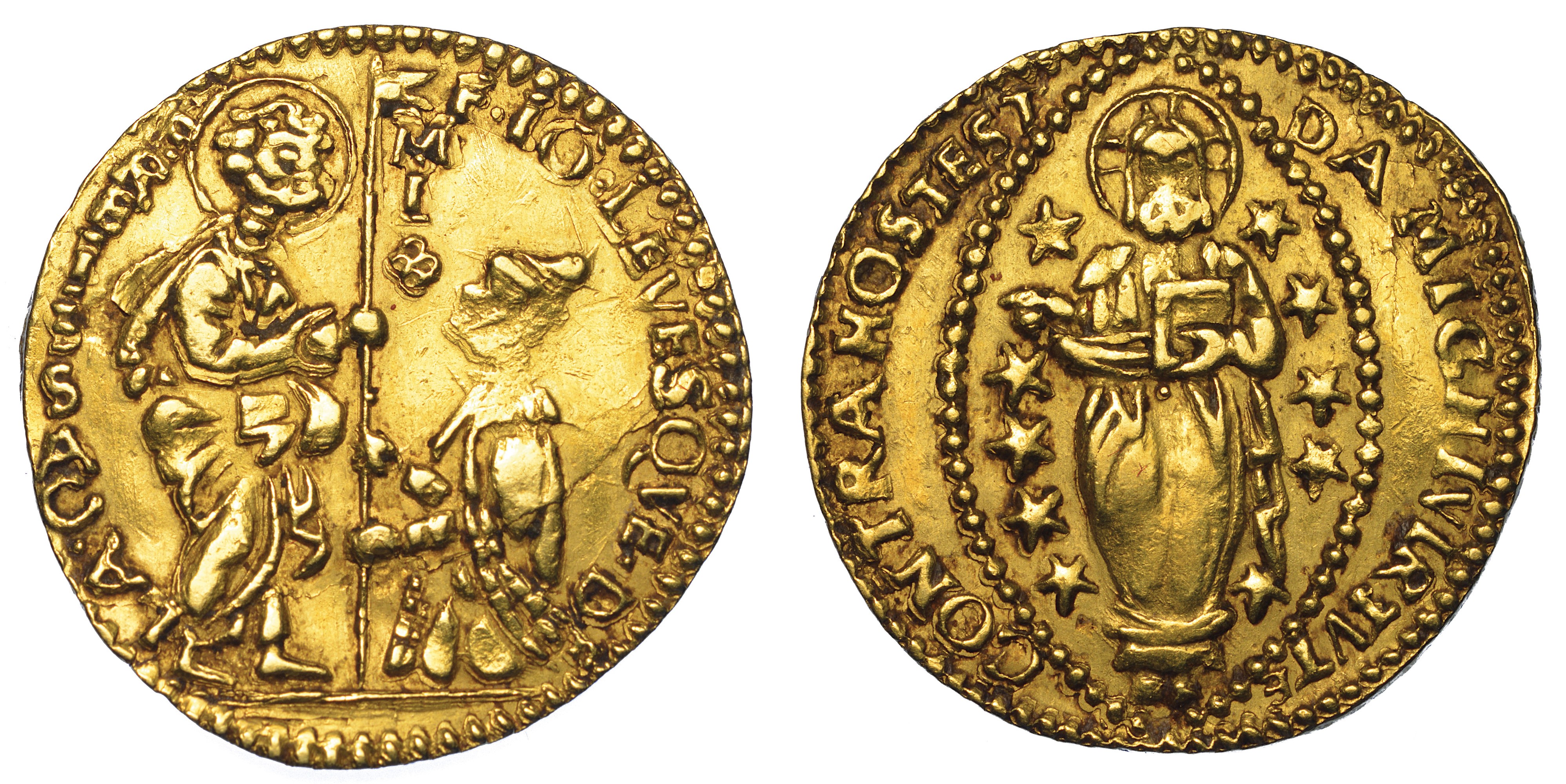 MALTA. JEAN LEVESQUE DE LA CASSIERE (51º Gran Maestro dell'Ordine dei Cavalieri Ospitalieri di Rodi e Malta), 1572-1581. Imitazione orientale dello zecchino veneziano.