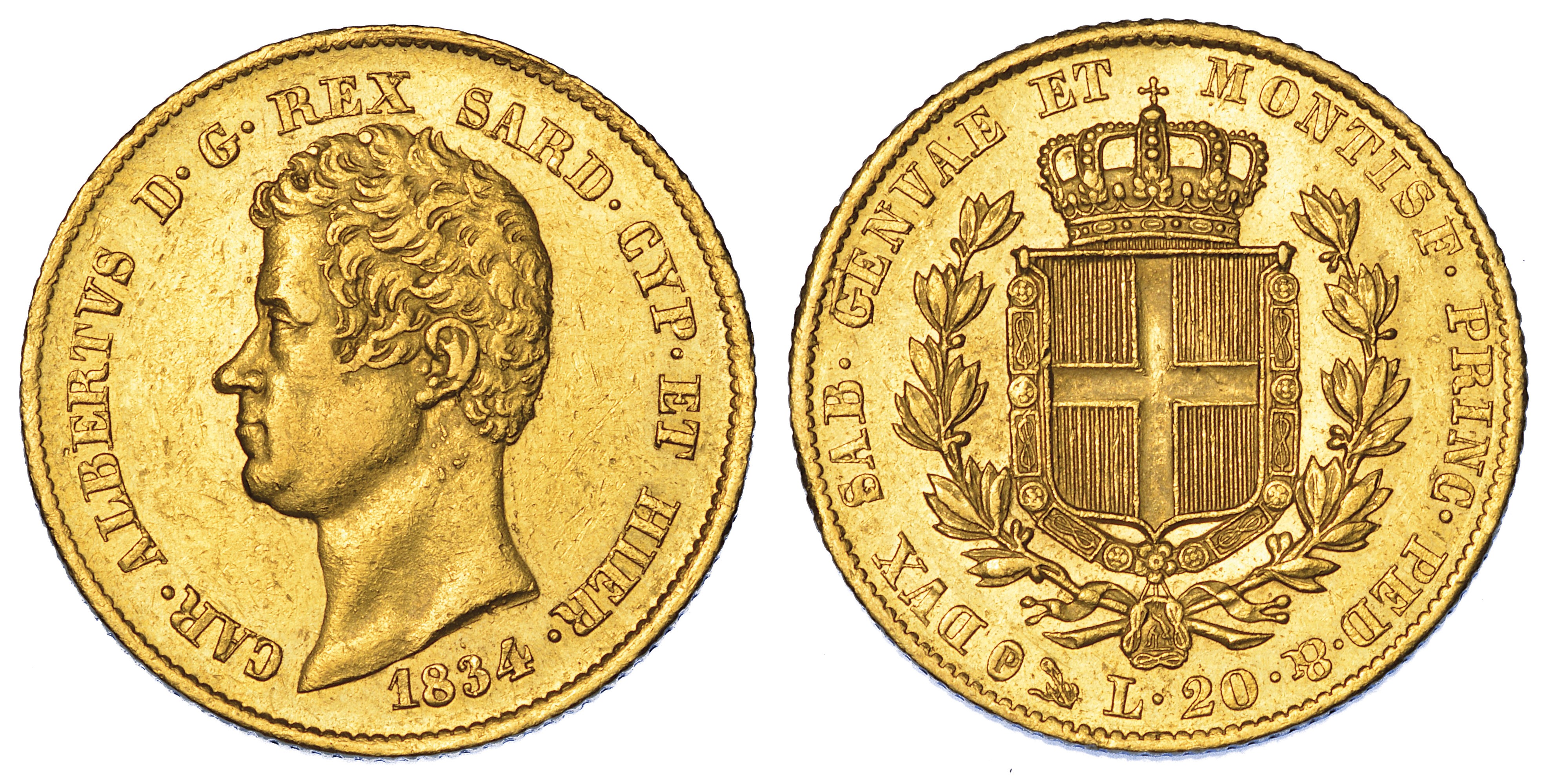 REGNO DI SARDEGNA. CARLO ALBERTO DI SAVOIA, 1831-1849. 20 Lire 1834. Genova.