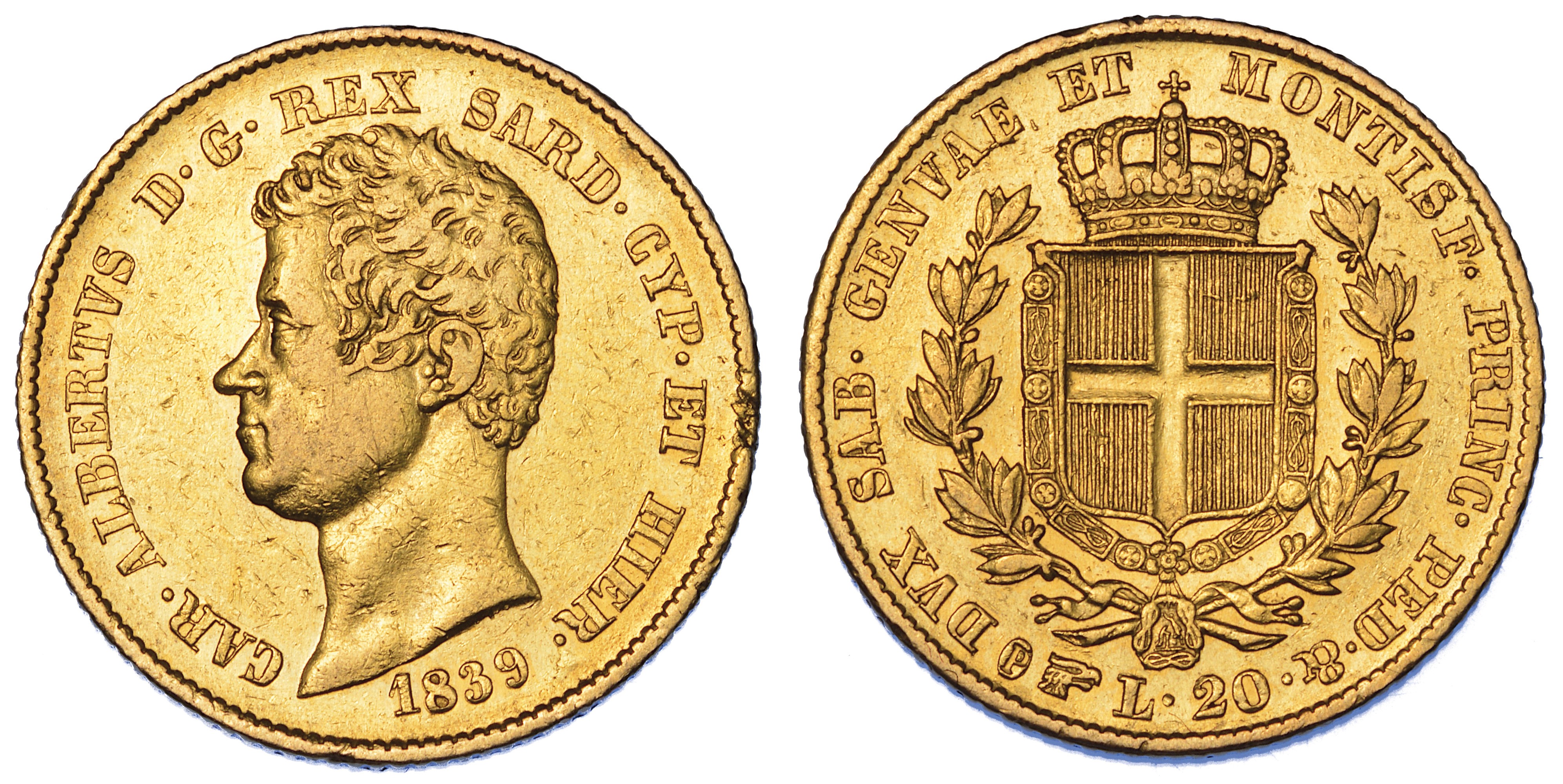 REGNO DI SARDEGNA. CARLO ALBERTO DI SAVOIA, 1831-1849. 20 Lire 1839. Torino.