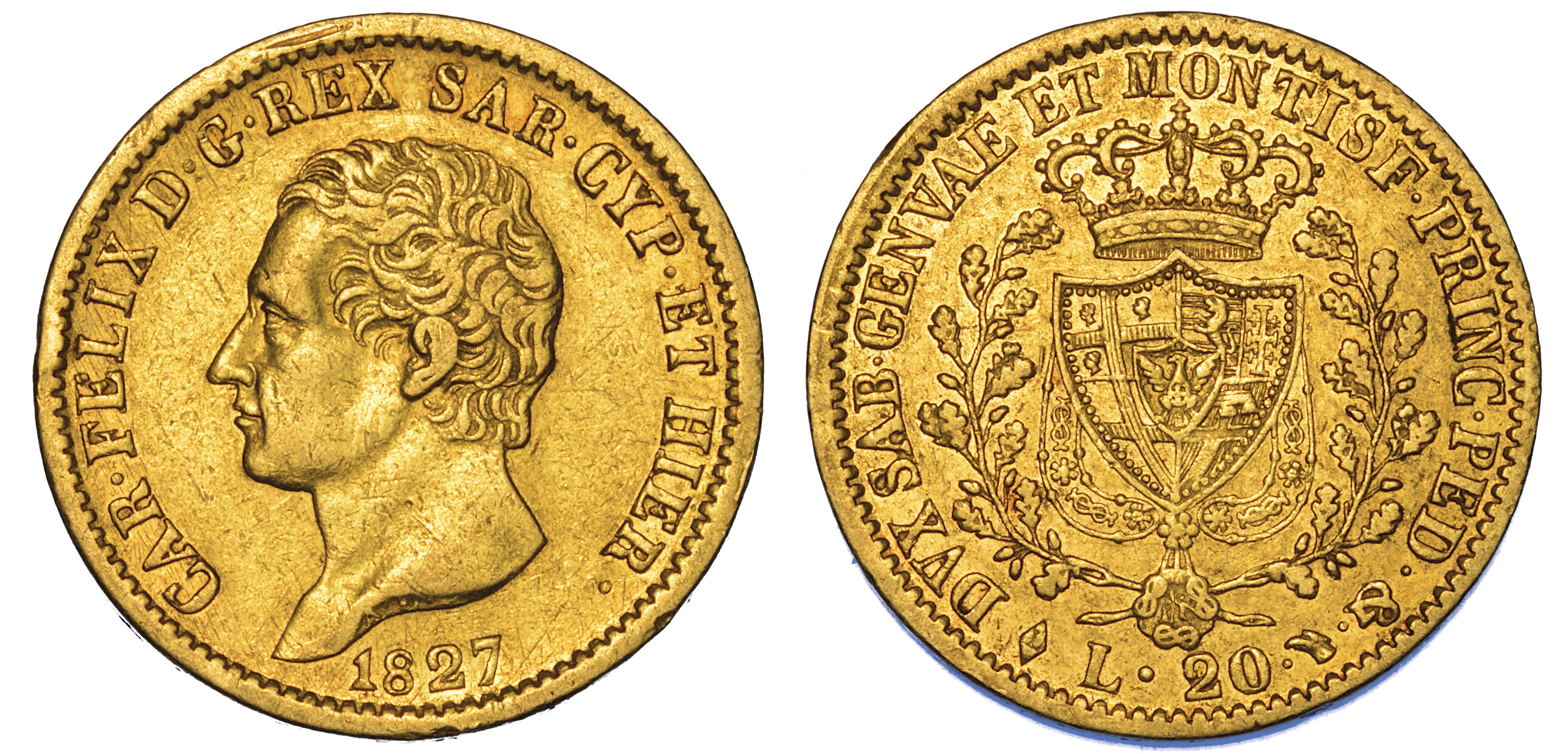 REGNO DI SARDEGNA. CARLO FELICE DI SAVOIA, 1821-1831. 20 Lire 1827. Torino.