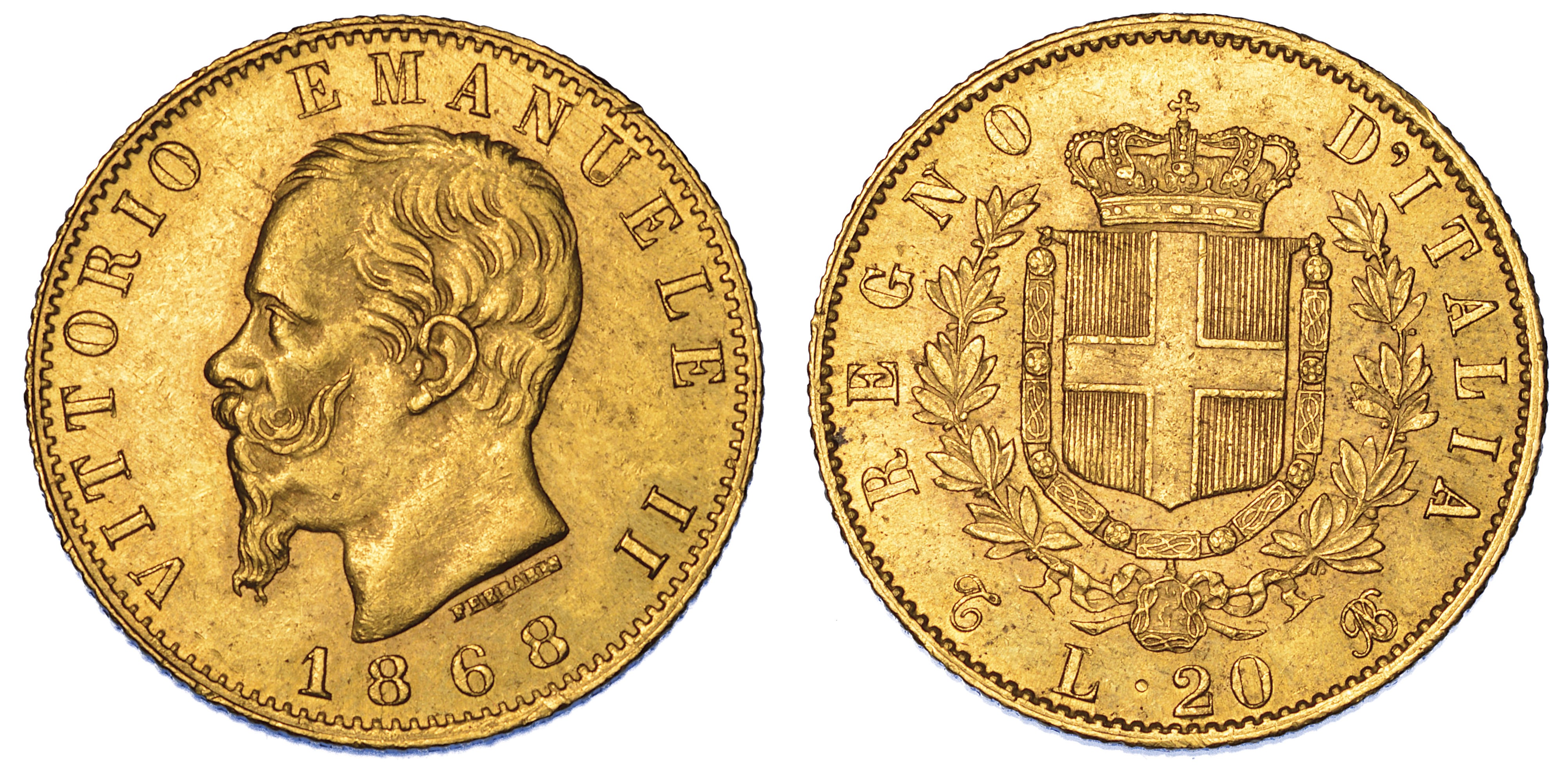 REGNO D'ITALIA. VITTORIO EMANUELE II DI SAVOIA, 1861-1878. 20 Lire 1868. Torino.
