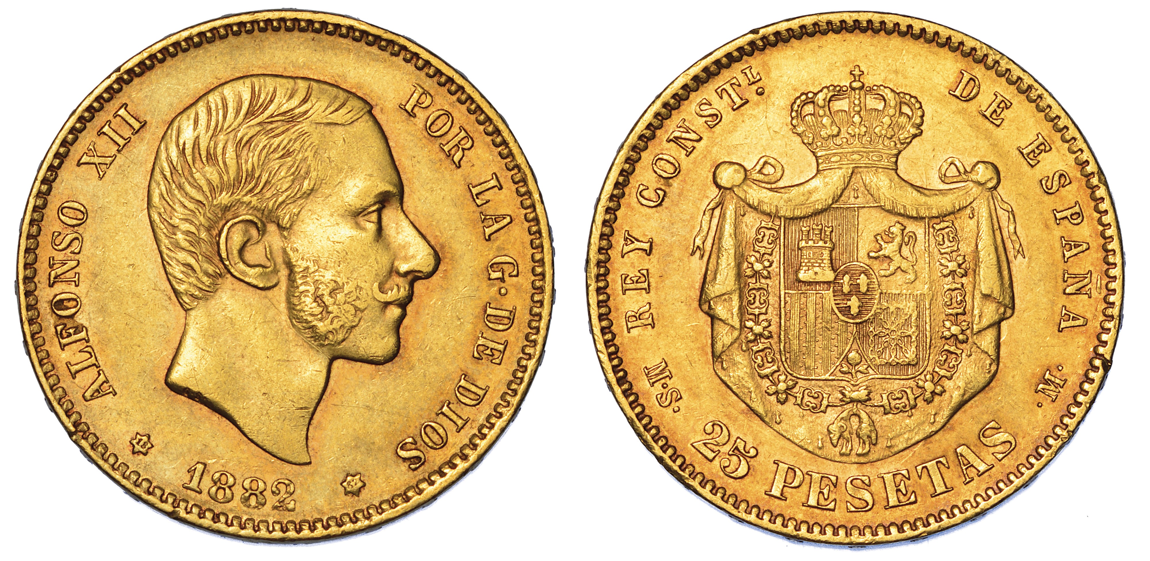 SPAGNA. ALFONSO XII, 1874-1885. 25 Pesetas 1882.