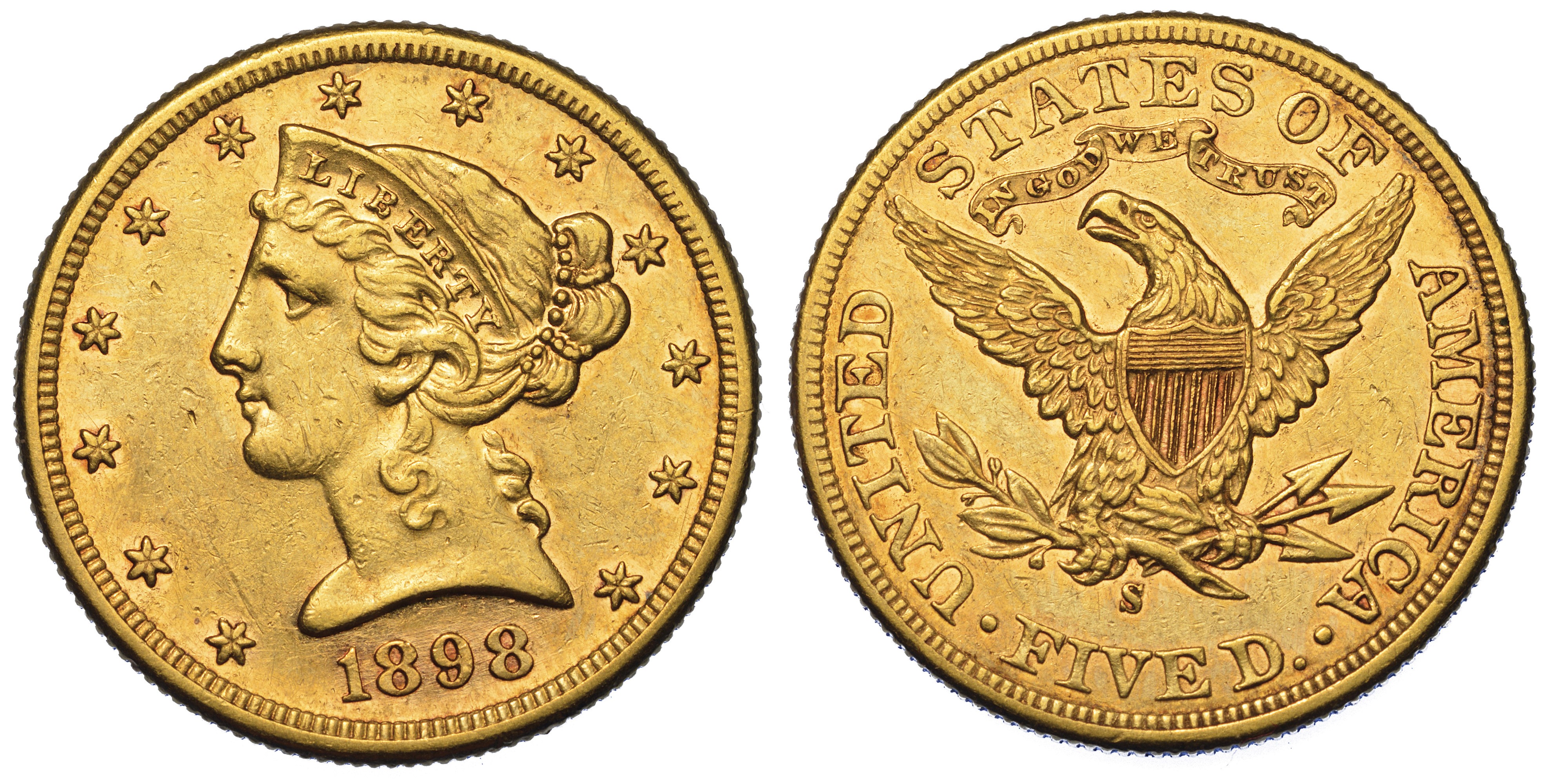 USA. REPUBLIC. 5 Dollars “Coronet Head” 1898. Zecca di San Francisco, California.