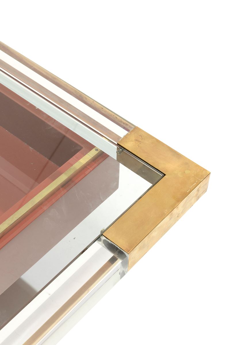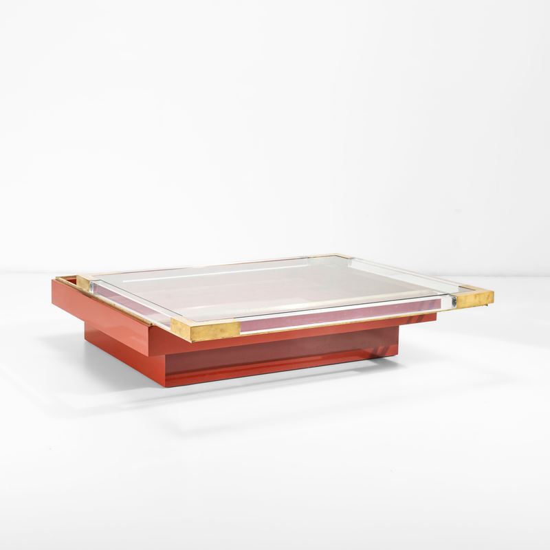 Struttura in legno laccato. Piano scorrevole con struttura in ottone e plexiglass e piano in cristallo.