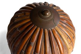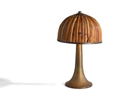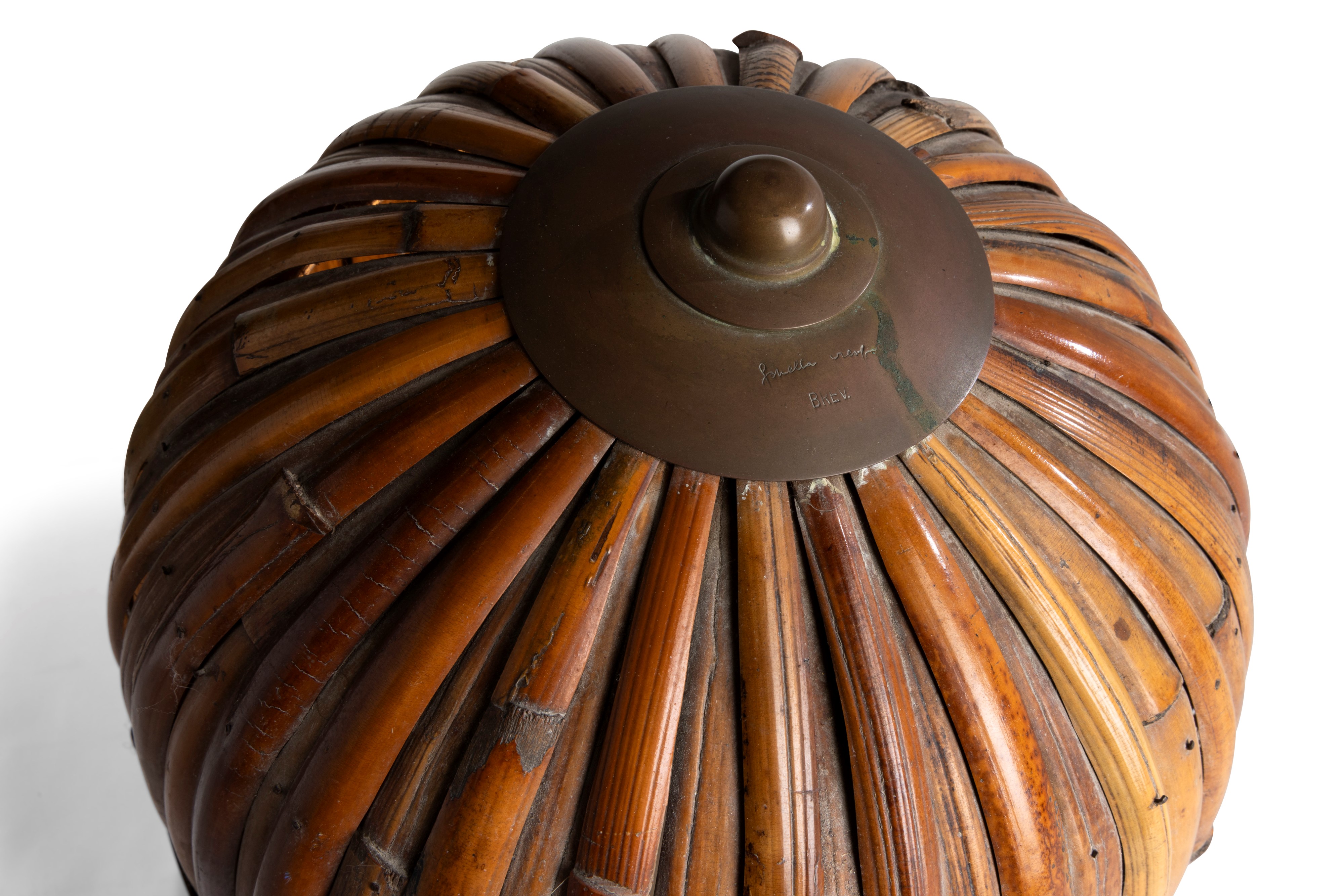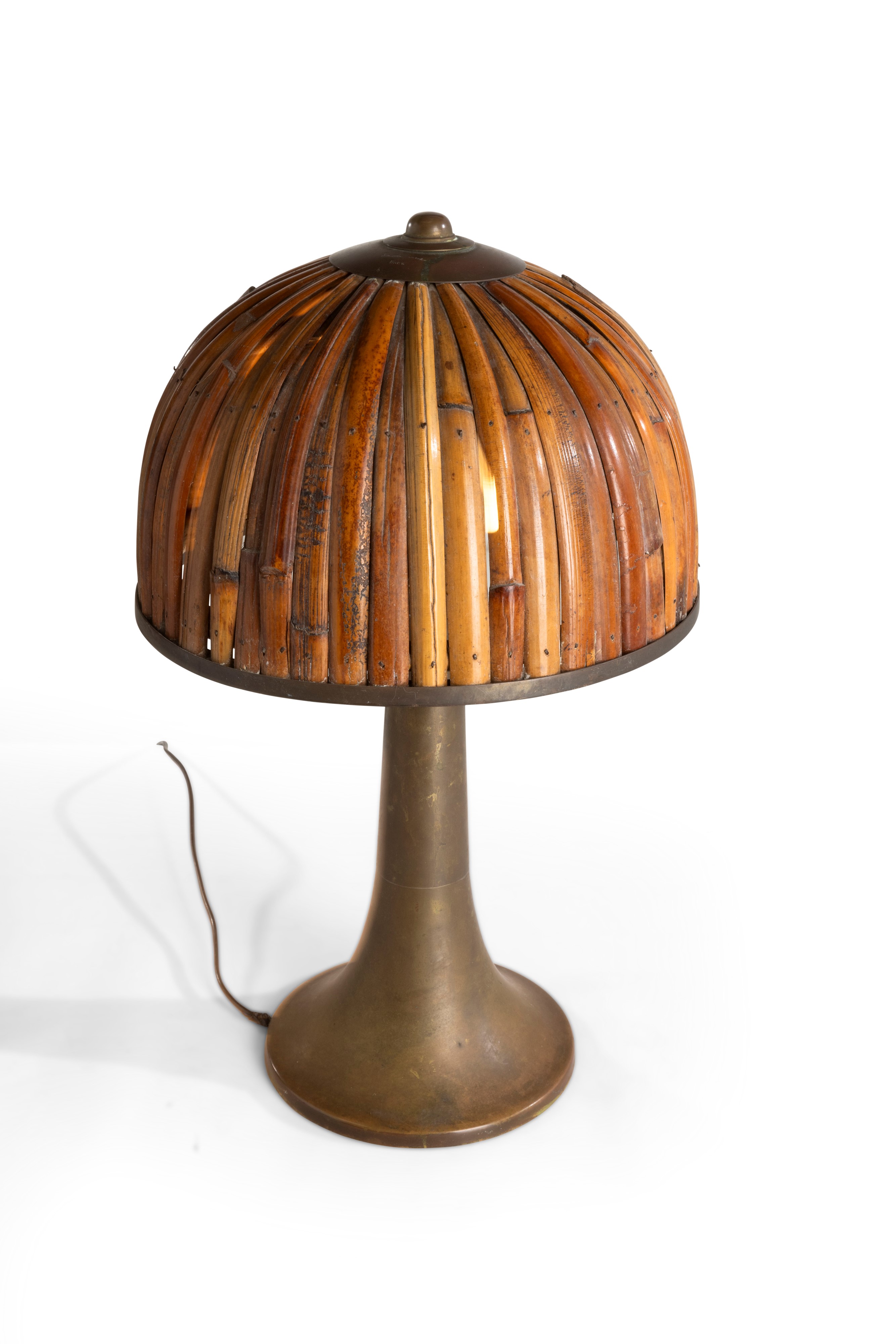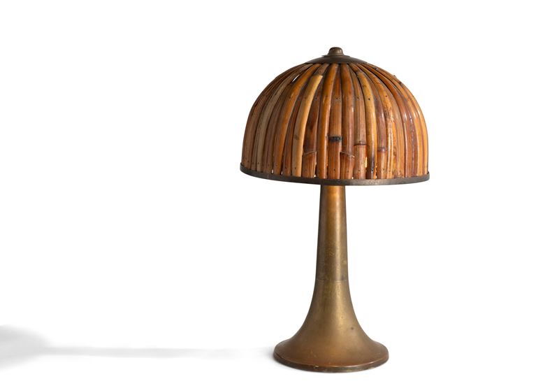 Struttura in ottone con cappello diffusore in ottone e bambù.