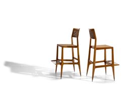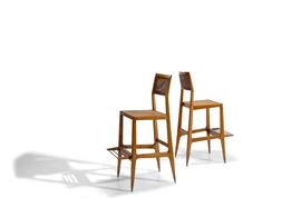 Struttura in legno con sedute e schienali in paglia di Vienna. Dettagli in ottone.