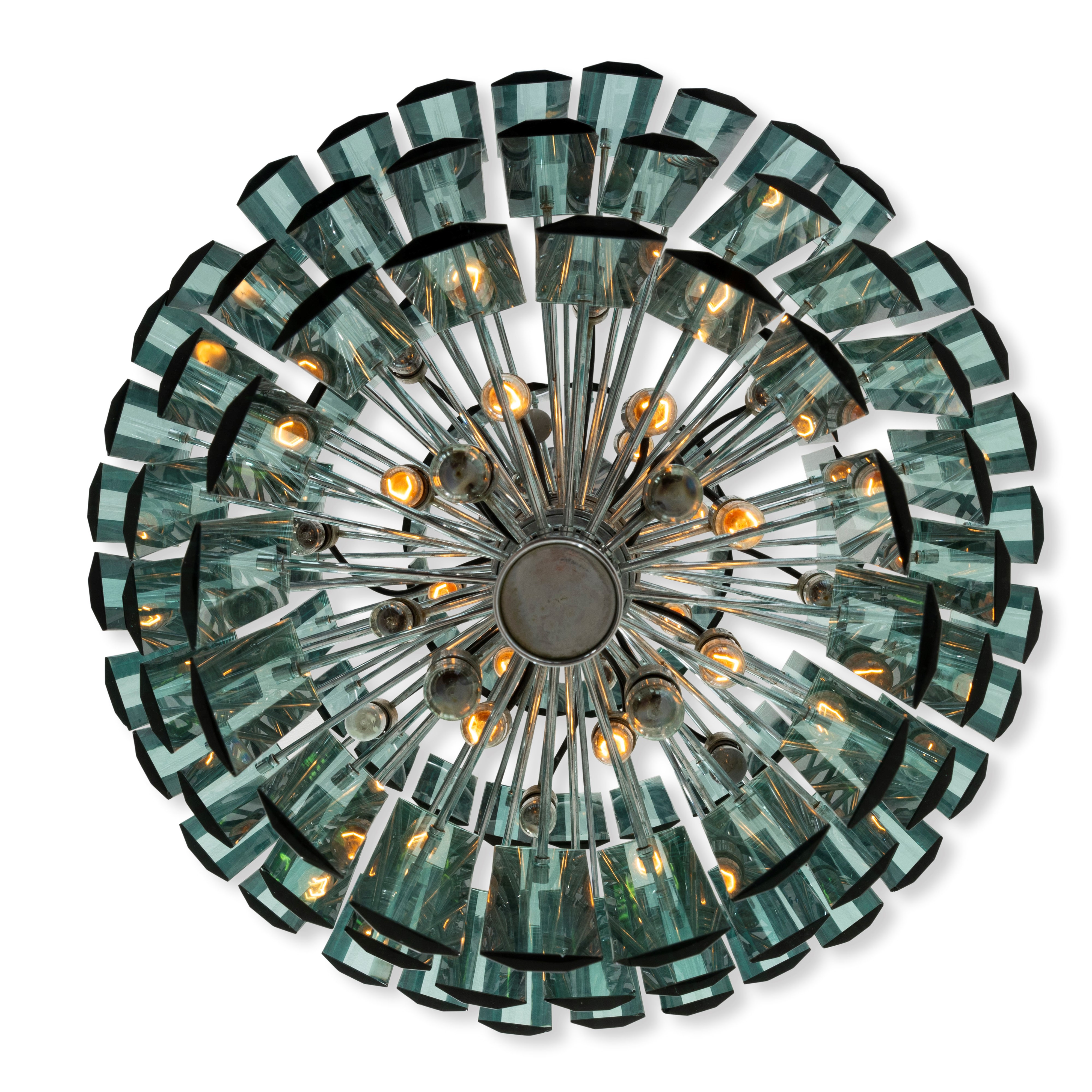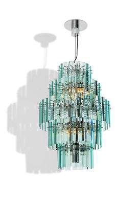 Struttura in metallo cromato e diffusori in cristallo colorato molato.