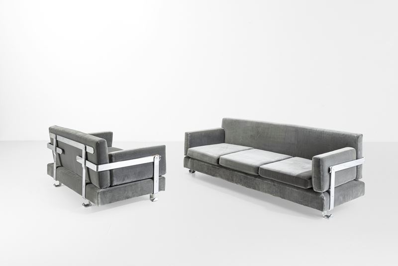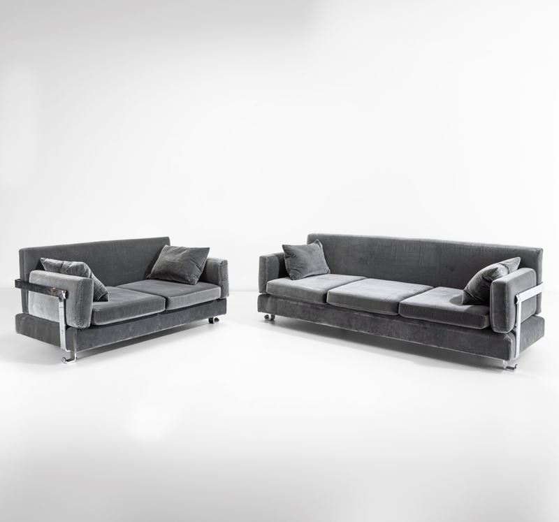 Due divani mod. P11 Fasce cromate.